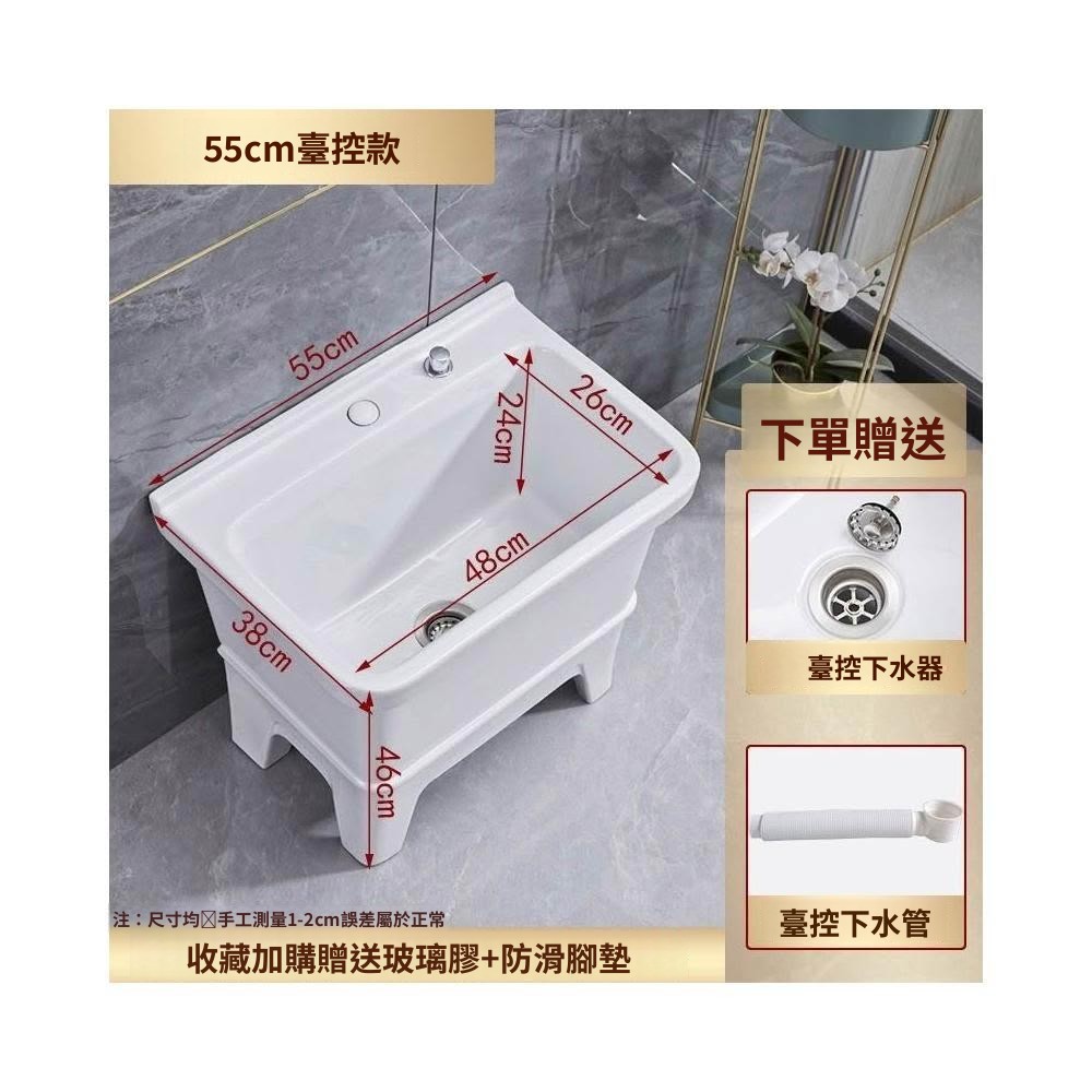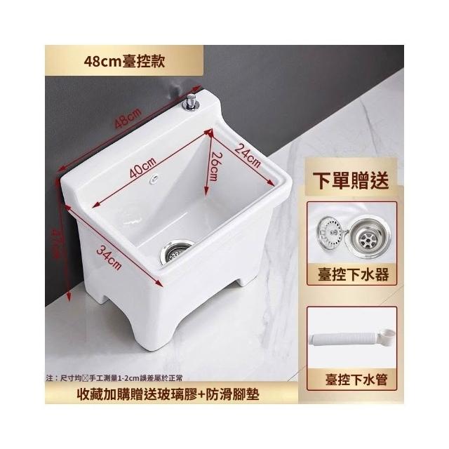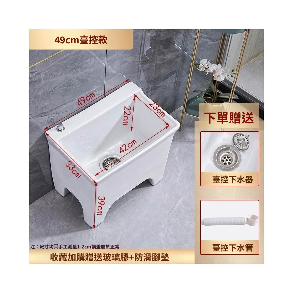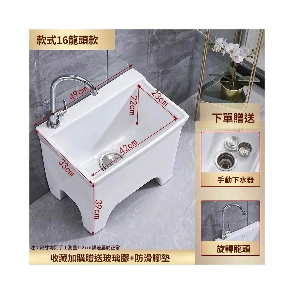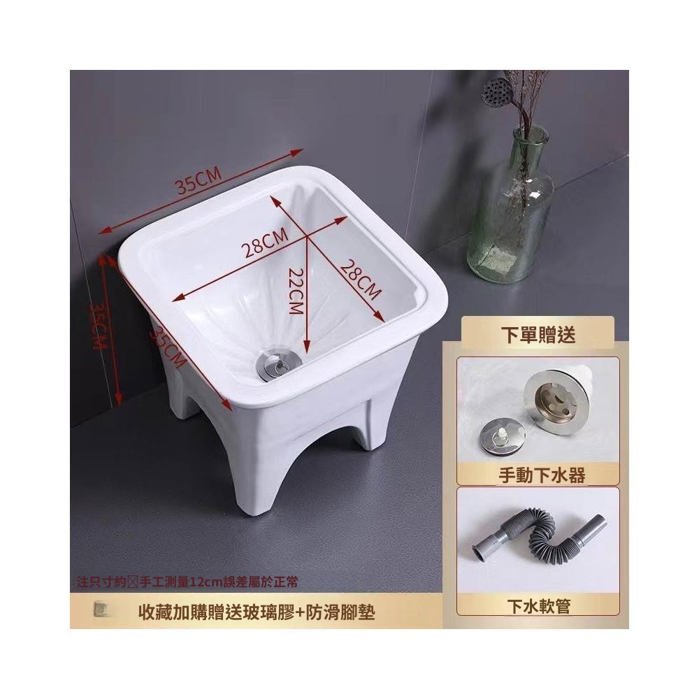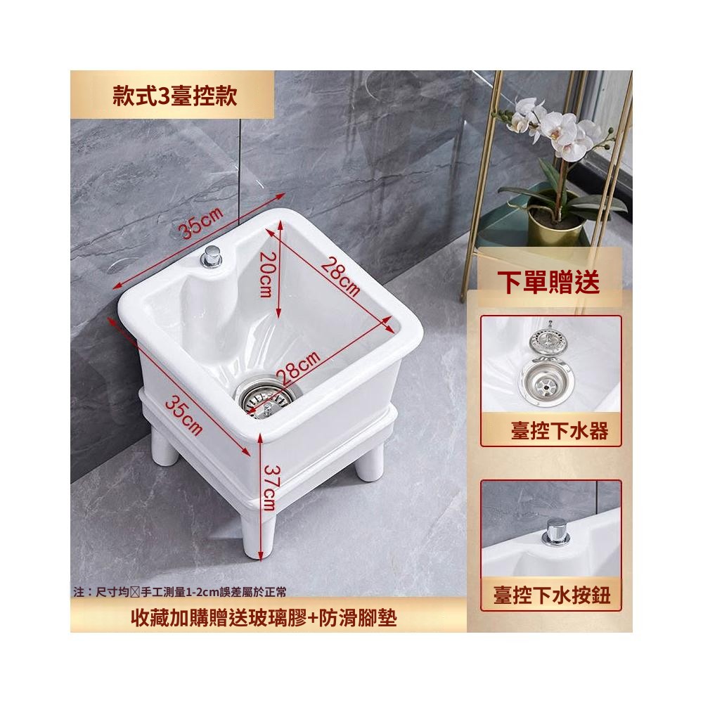 熱銷💟拖把池 陶瓷家用 陽臺衛生間 高腿大小 方形拖布池 洗地墩布盆 自動水槽 自動下水器 拖布盆 陶瓷拖