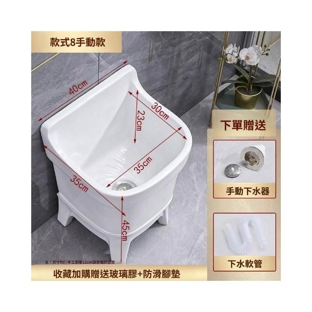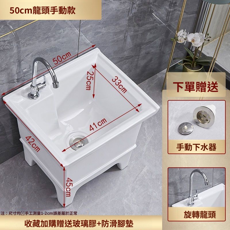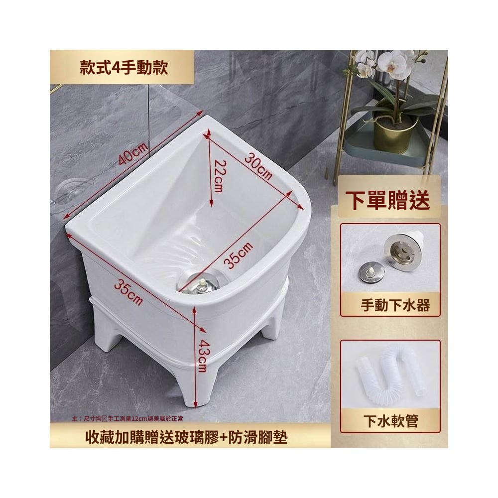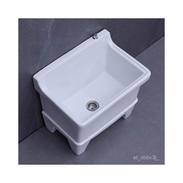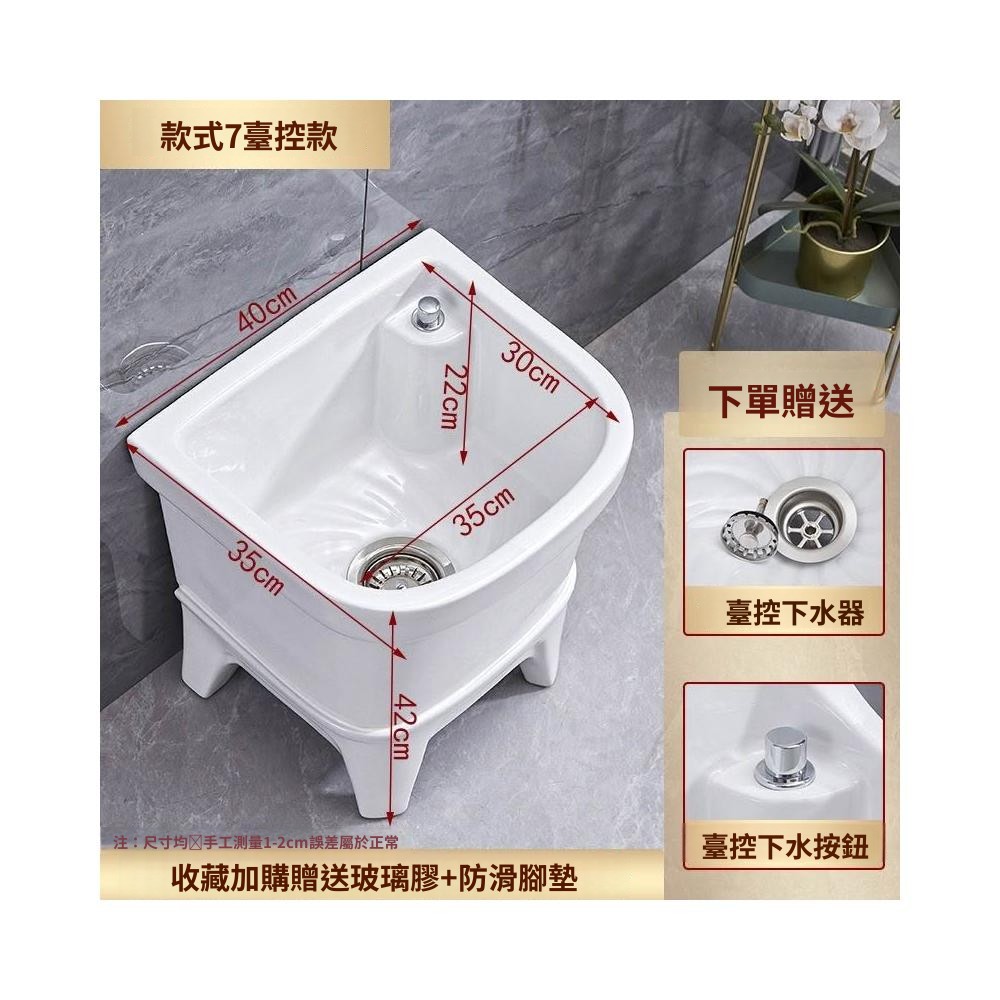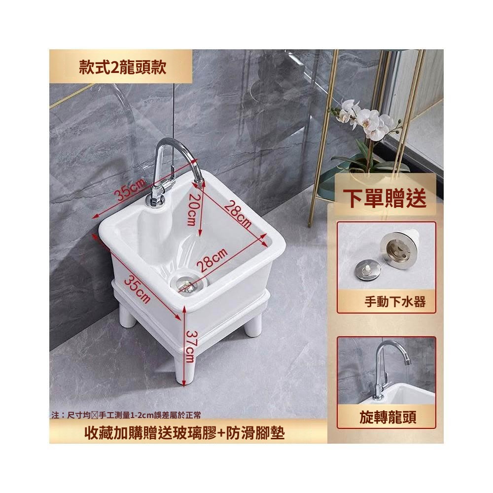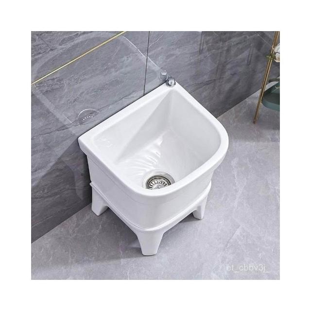 熱銷💟拖把池 陶瓷家用 陽臺衛生間 高腿大小 方形拖布池 洗地墩布盆 自動水槽 自動下水器 拖布盆 陶瓷拖