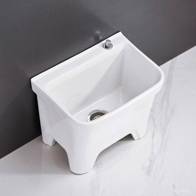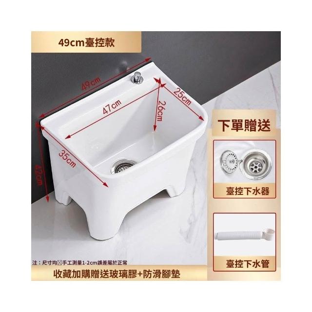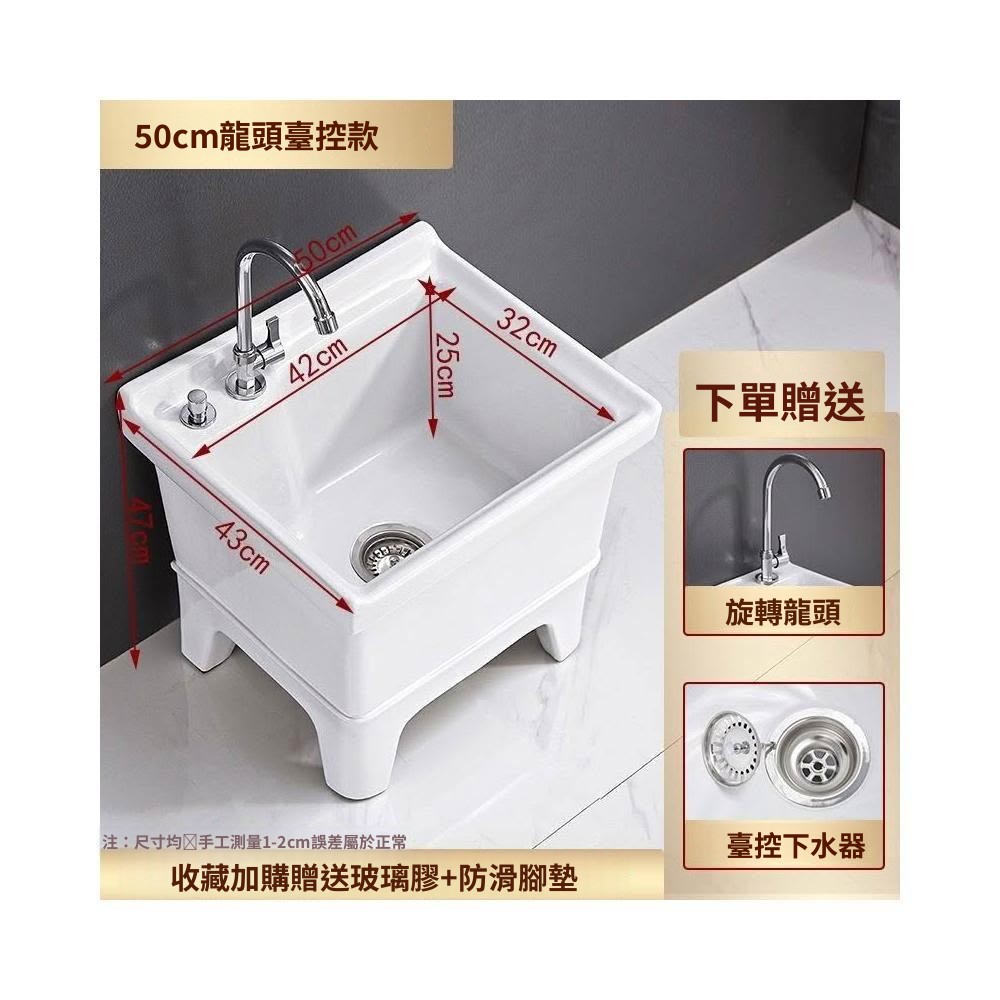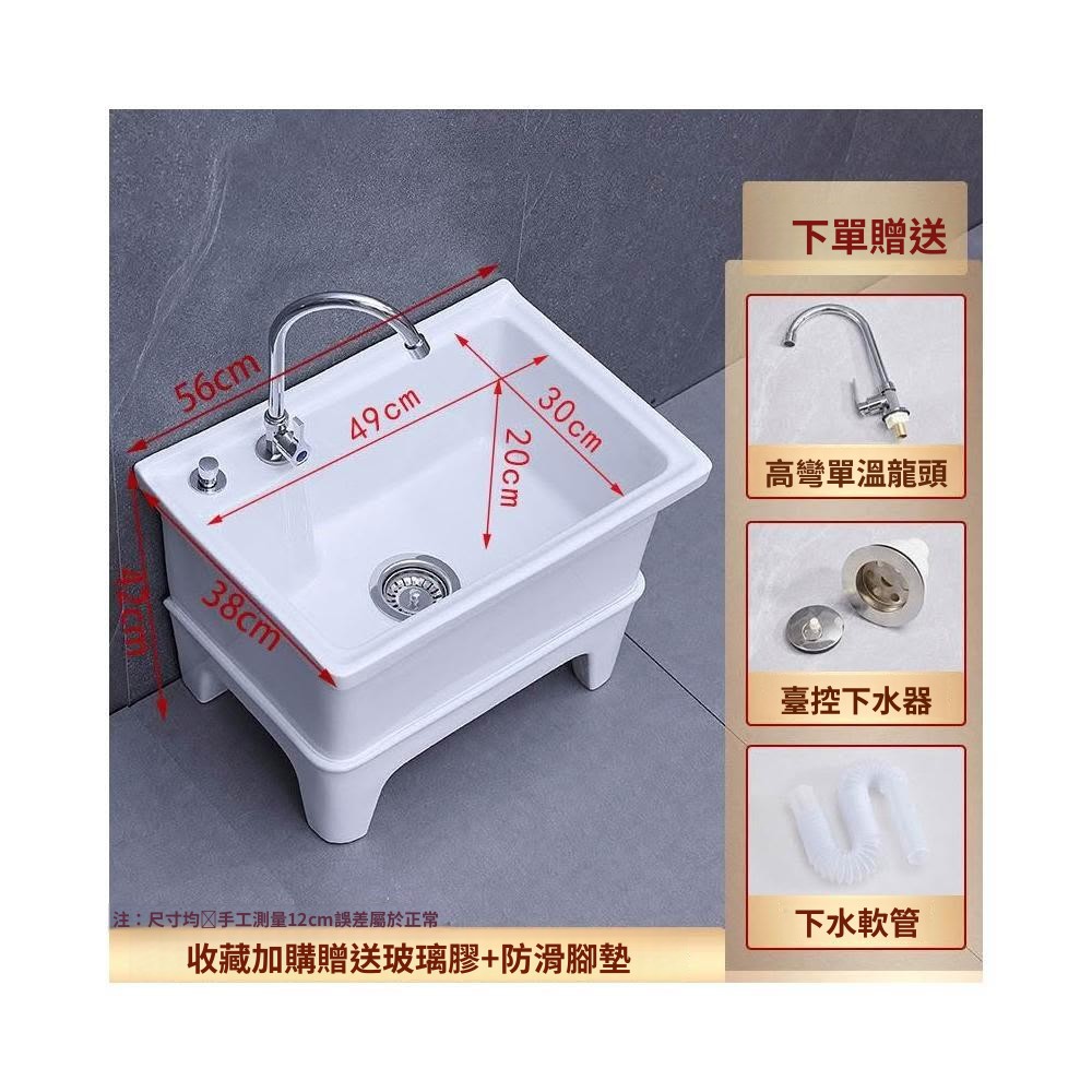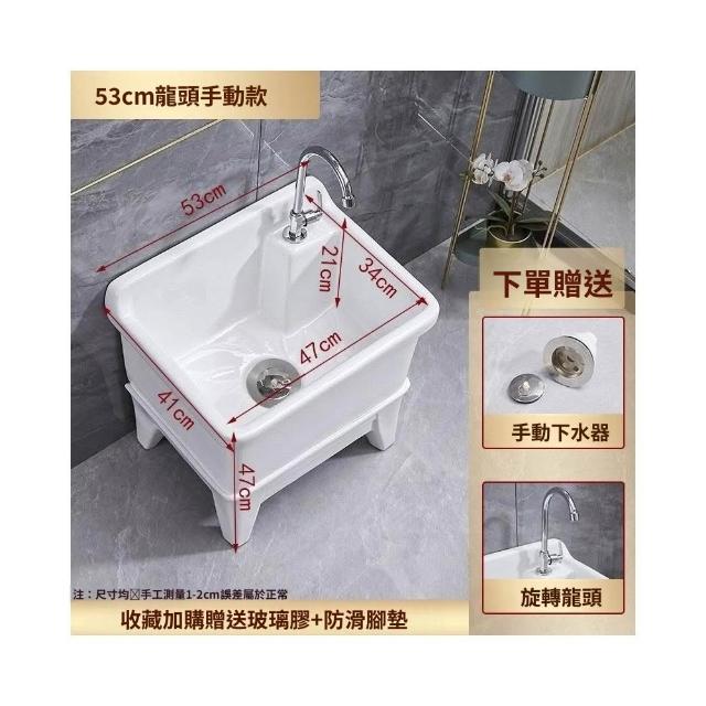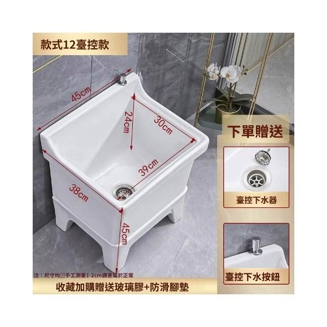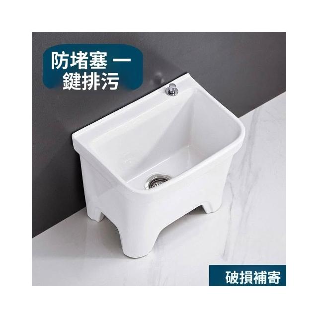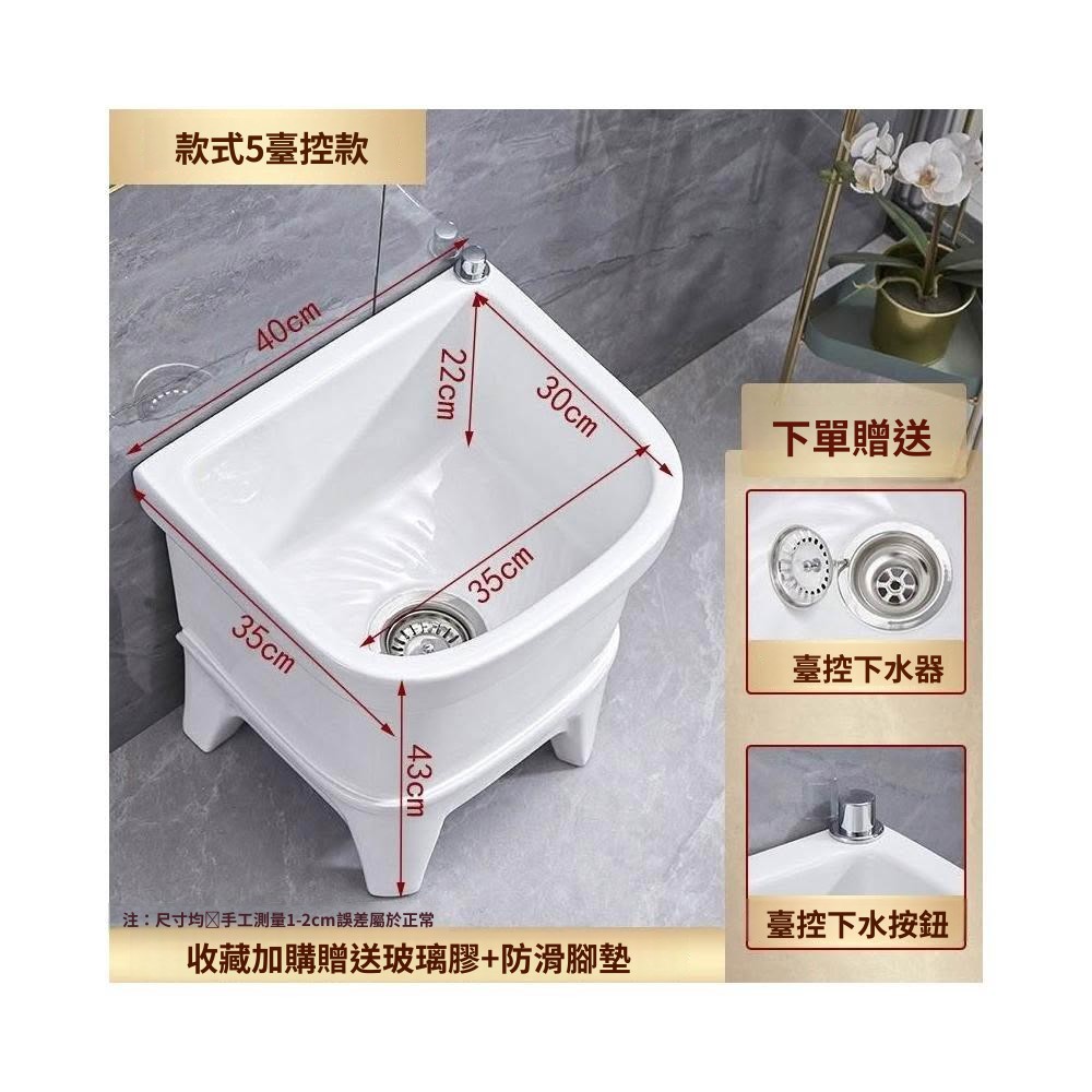 熱銷💟拖把池 陶瓷家用 陽臺衛生間 高腿大小 方形拖布池 洗地墩布盆 自動水槽 自動下水器 拖布盆 陶瓷拖