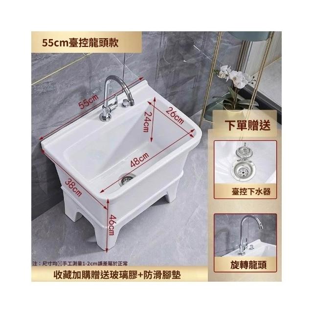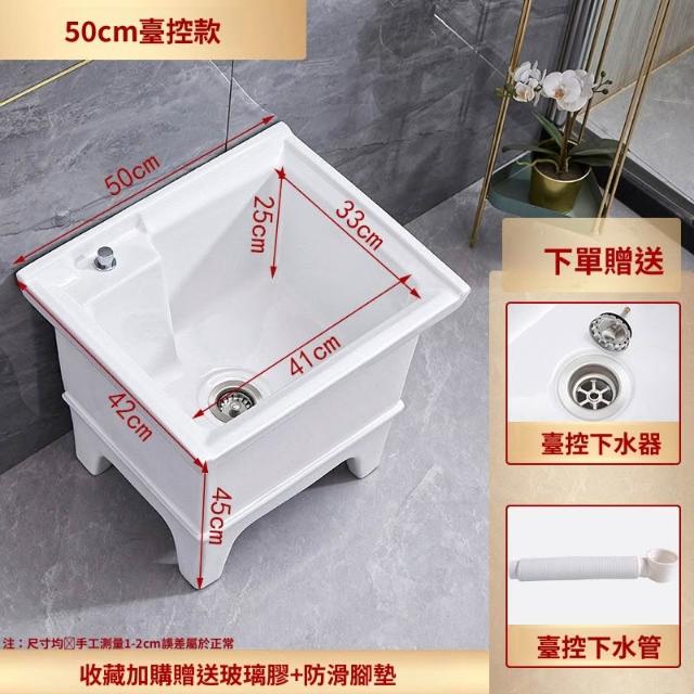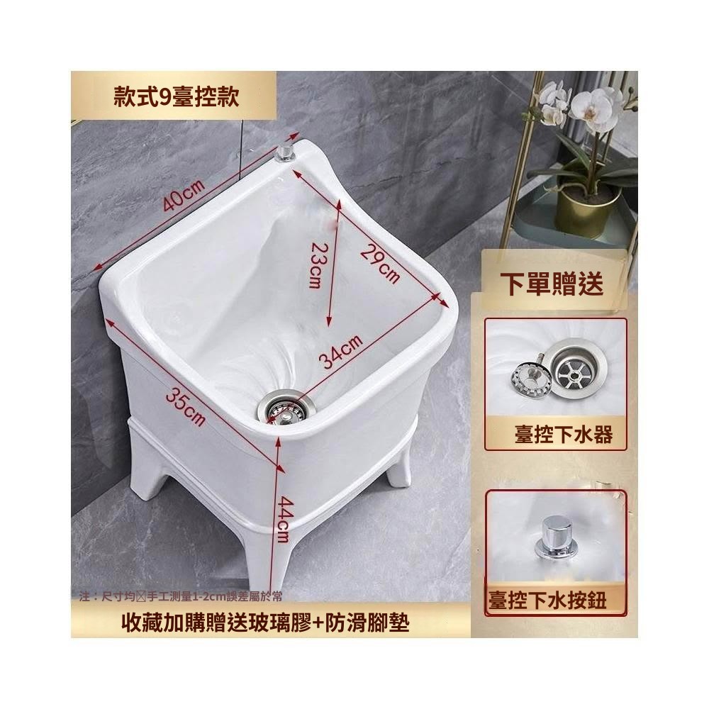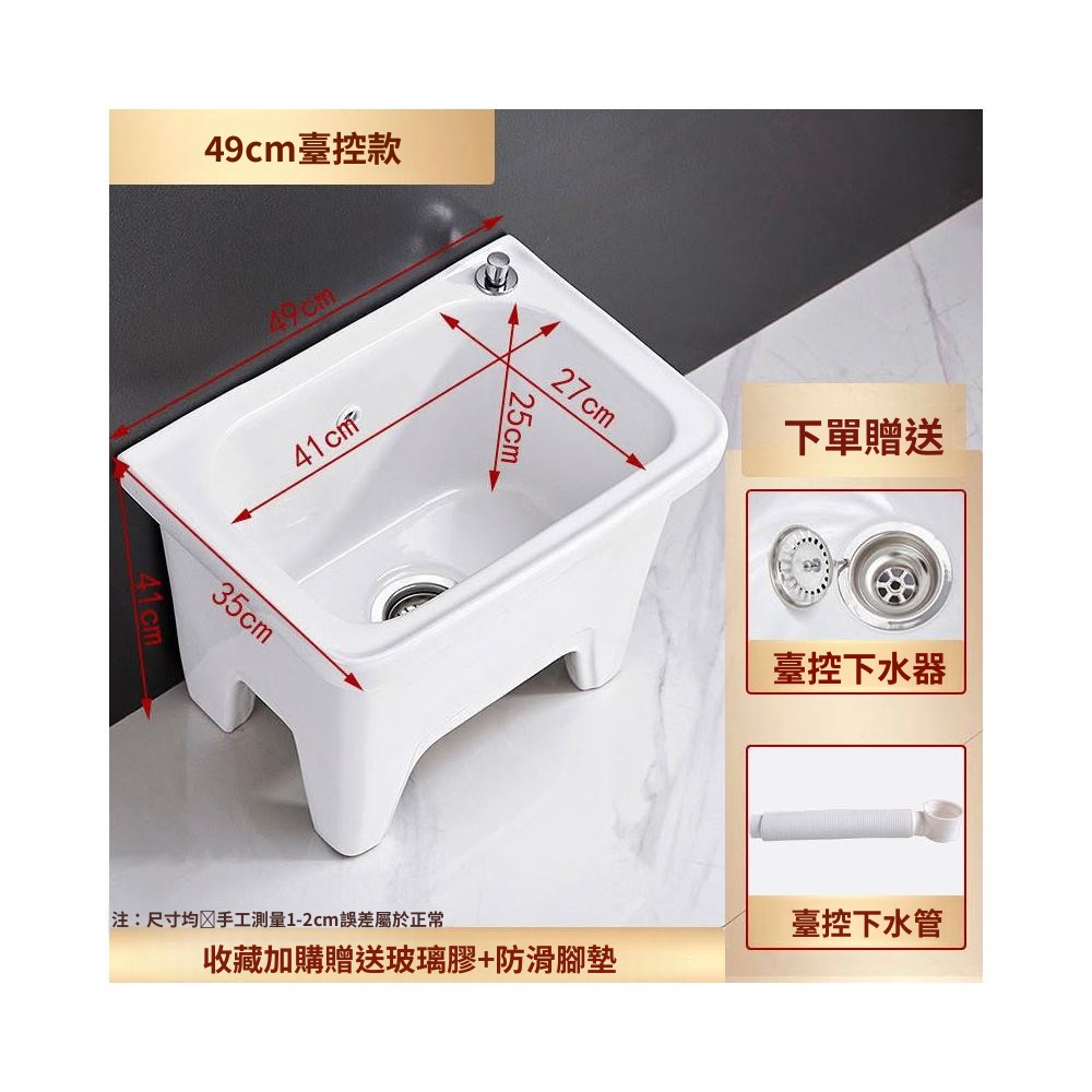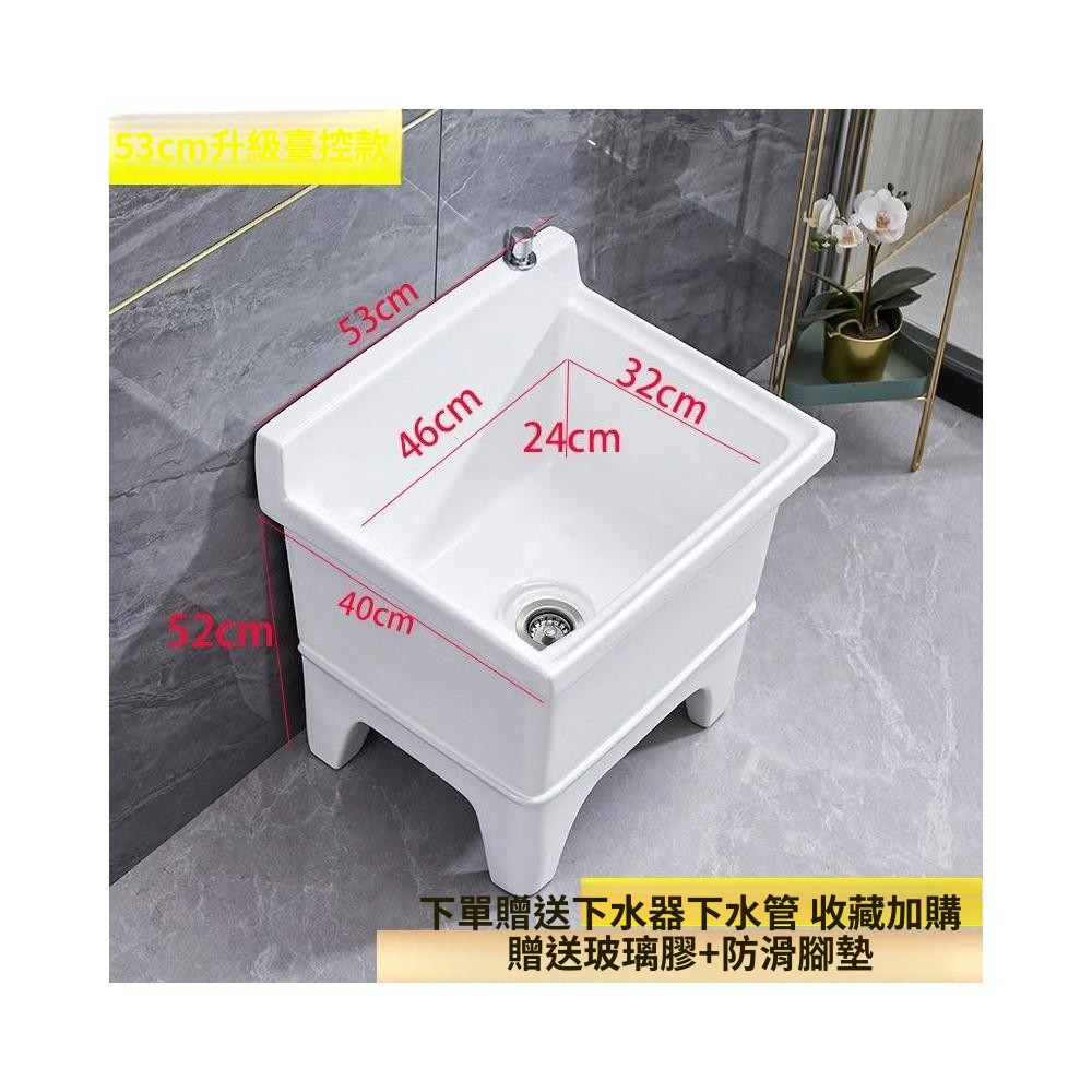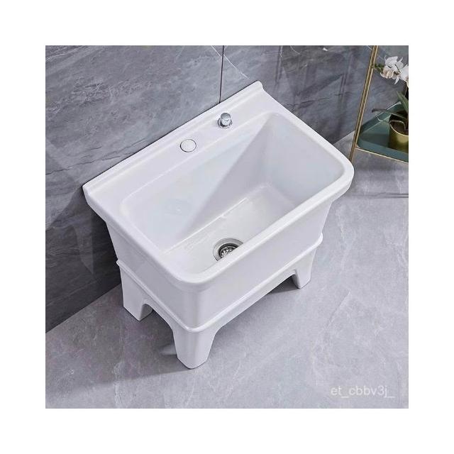 熱銷💟拖把池 陶瓷家用 陽臺衛生間 高腿大小 方形拖布池 洗地墩布盆 自動水槽 自動下水器 拖布盆 陶瓷拖