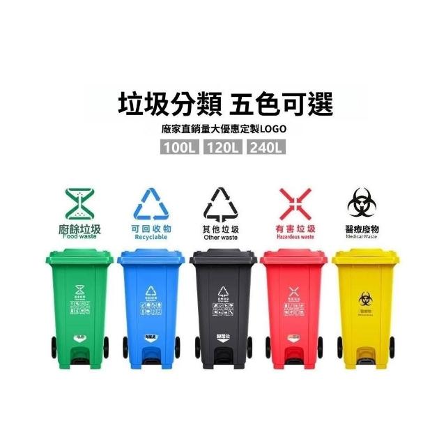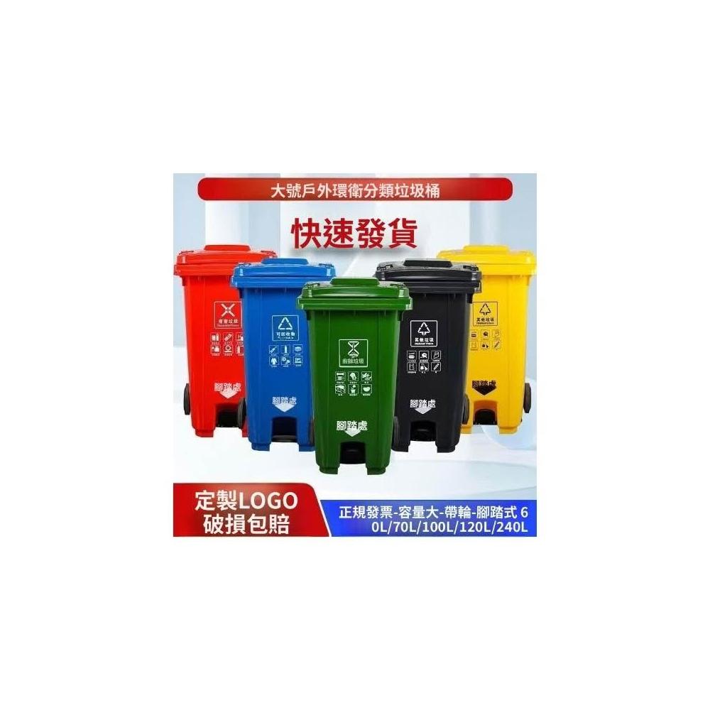 熱銷💟240L陞戶外垃圾桶 大號環衛腳踏式商用加厚帶蓋塑料垃圾桶 大型分類掛車桶 腳踏垃圾桶