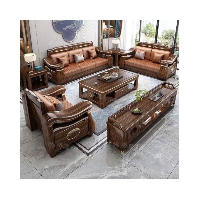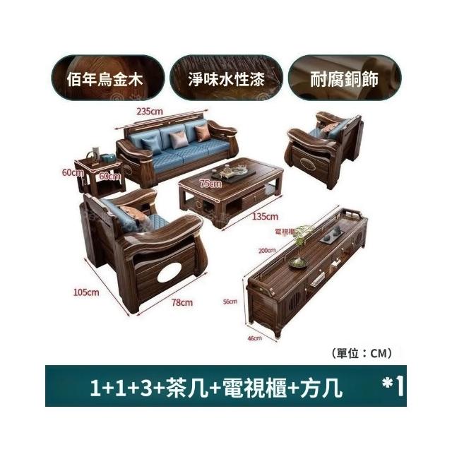 熱銷💟新中式烏金木全實木沙髮組閤大小戶型客廳冬夏兩用儲物全套家具 中式實木沙發組閤 實木沙發 木框沙發 沙發