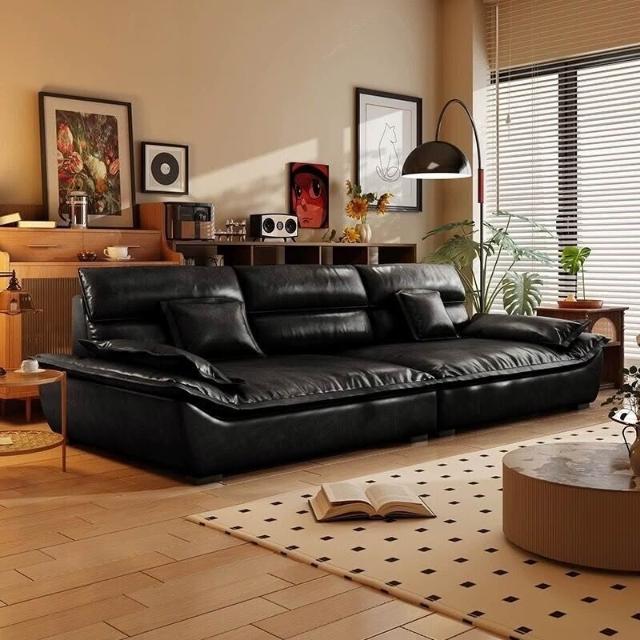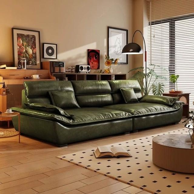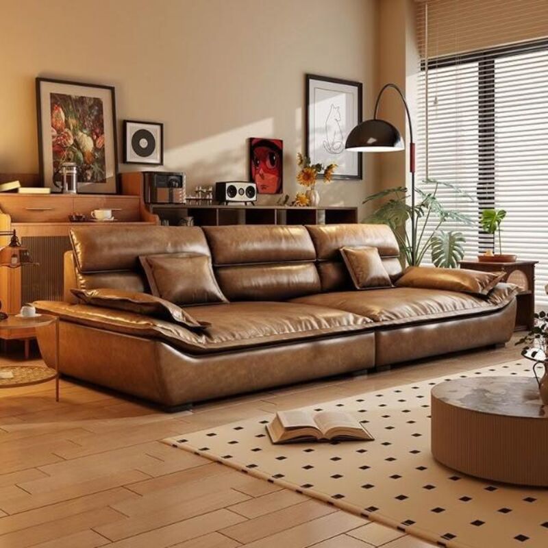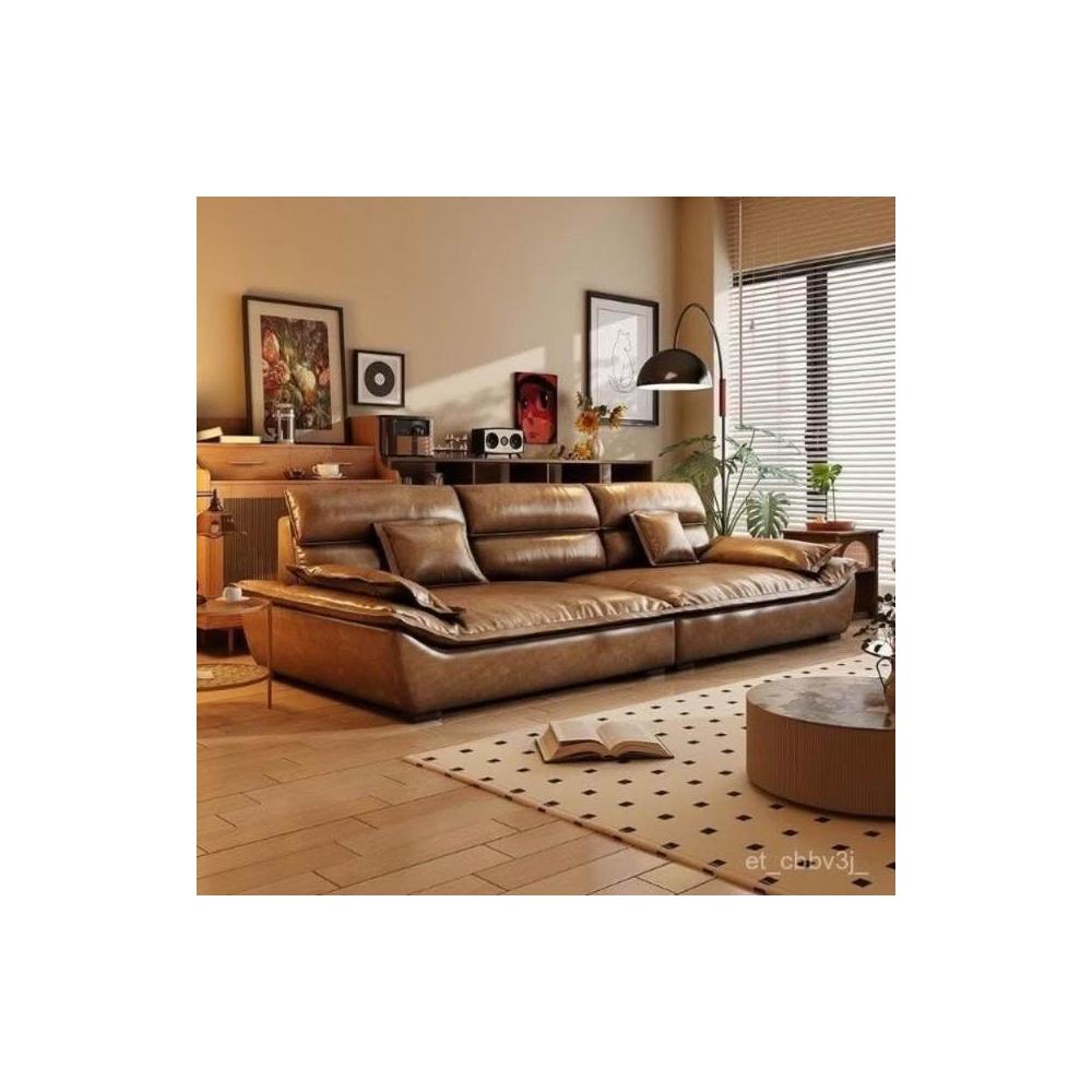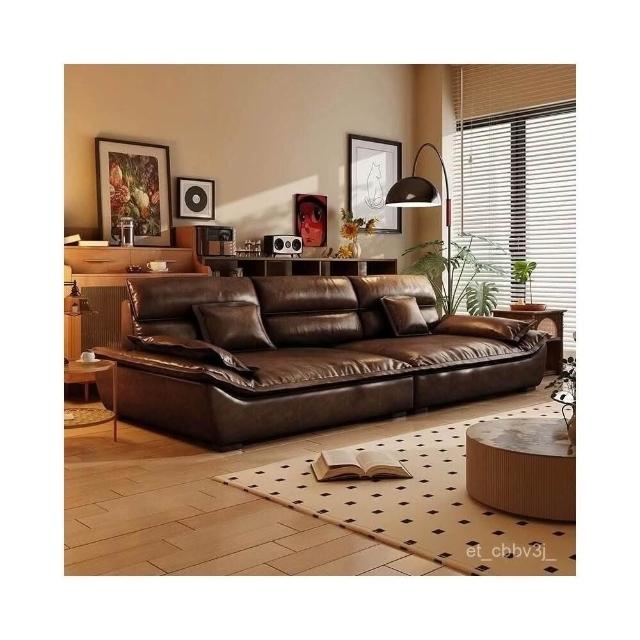 下殺💗復古貓抓油蠟皮帆船沙發客廳中古風做舊棕色 簡約家用直排小戶型 沙發床現代一體兩用小戶型客廳多功能沙發