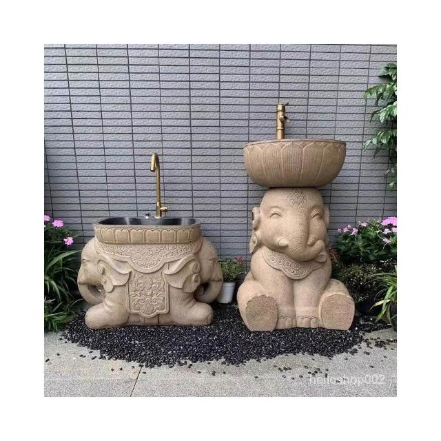 可開票 高品質 精品 中式庭院立柱洗手池花園大象立式洗手盆戶外陽臺洗臉洗漱臺拖把池
