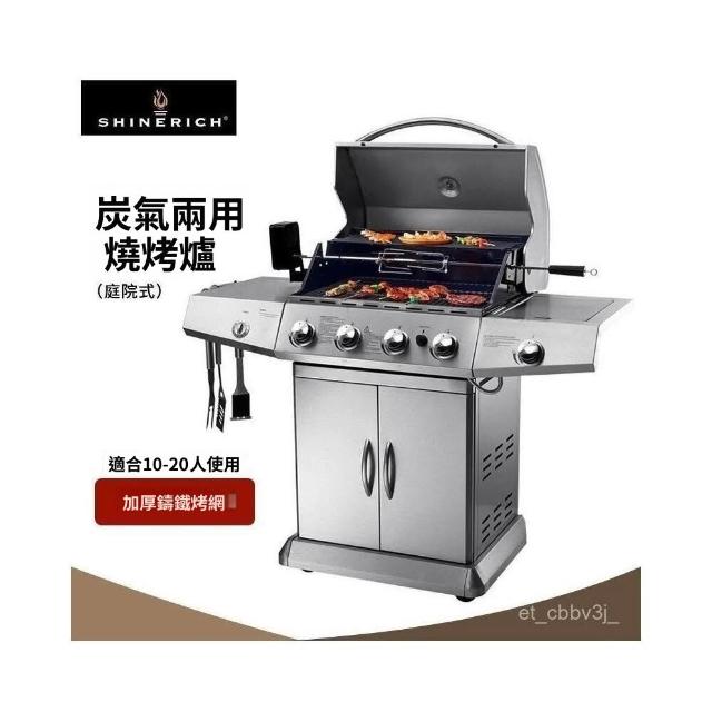 下殺💗瓦斯燒烤爐 庭院不銹鋼燒烤爐 家用燃氣戶外木炭燒烤架兩用 露營 烤肉 美式庭院燒烤架 多功能大號燜烤爐BBQ