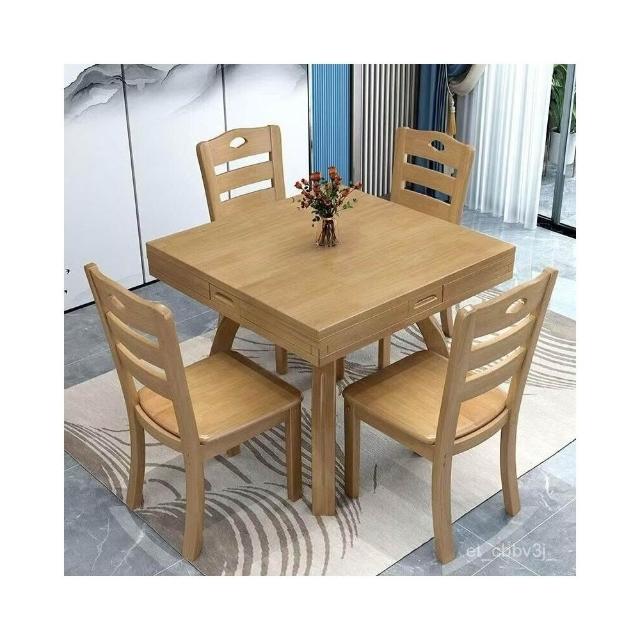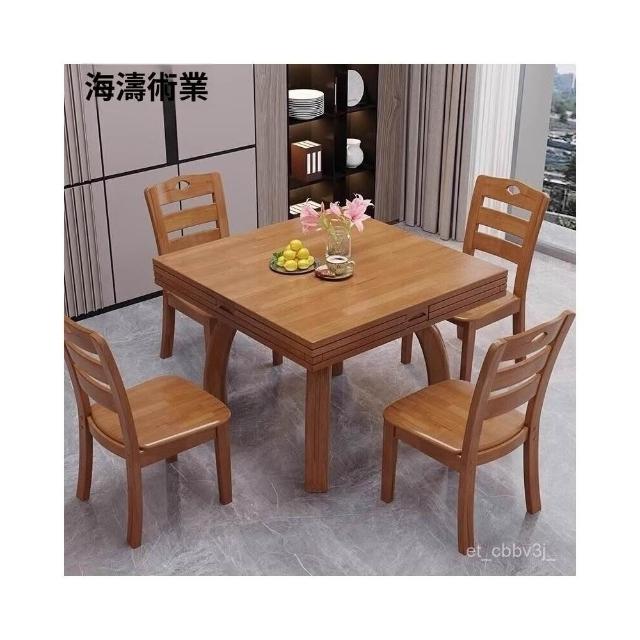 熱賣❤️實木餐桌正方形方圓兩用八僊桌四麵伸縮餐廳飯桌帶抽屜方桌變圓桌 餐桌 喫飯桌子 多功能桌 餐桌椅 桌椅組閤