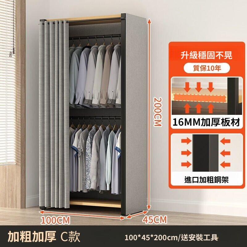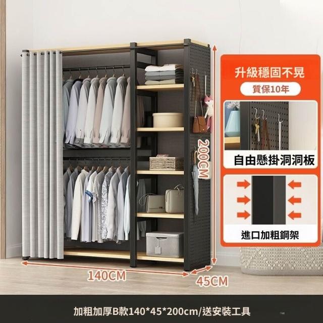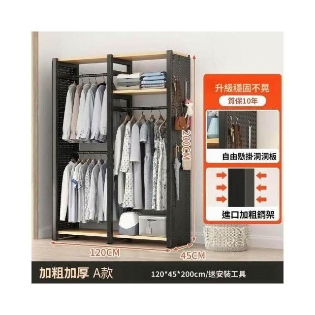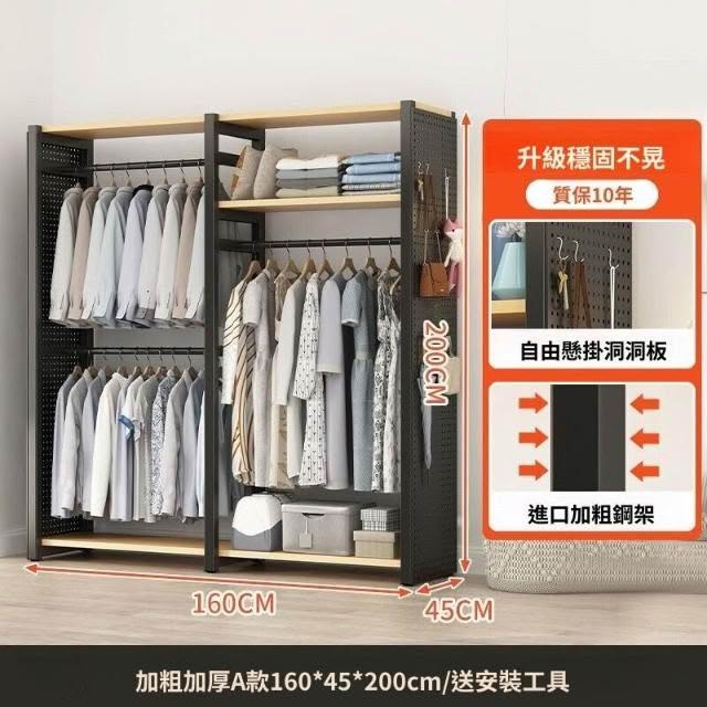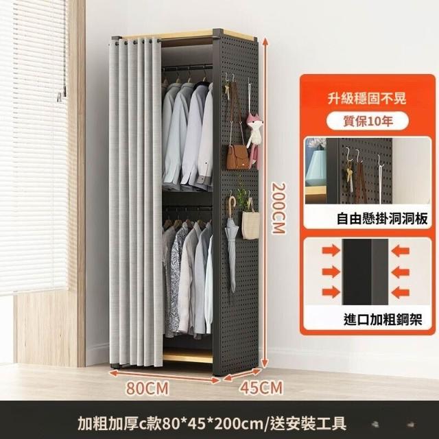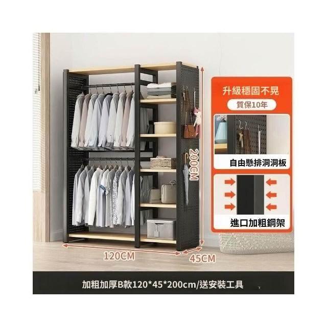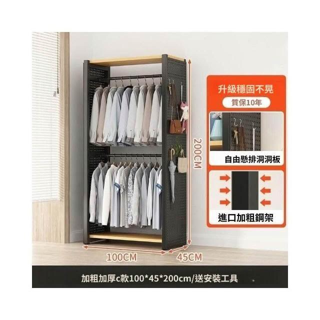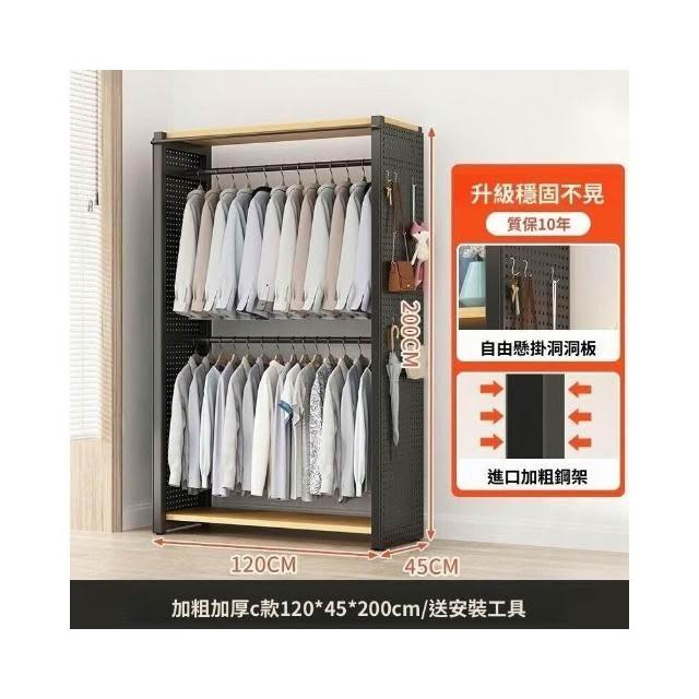 熱銷💗金屬衣櫃 簡易衣櫥 全封閉簡易組裝鐵藝衣櫃結實耐用開放式洞闆衣櫥 衣帽櫃 掛衣櫃 收納櫃 儲物櫃 開放式衣櫃