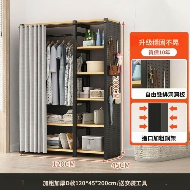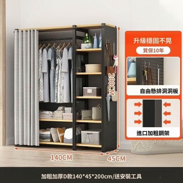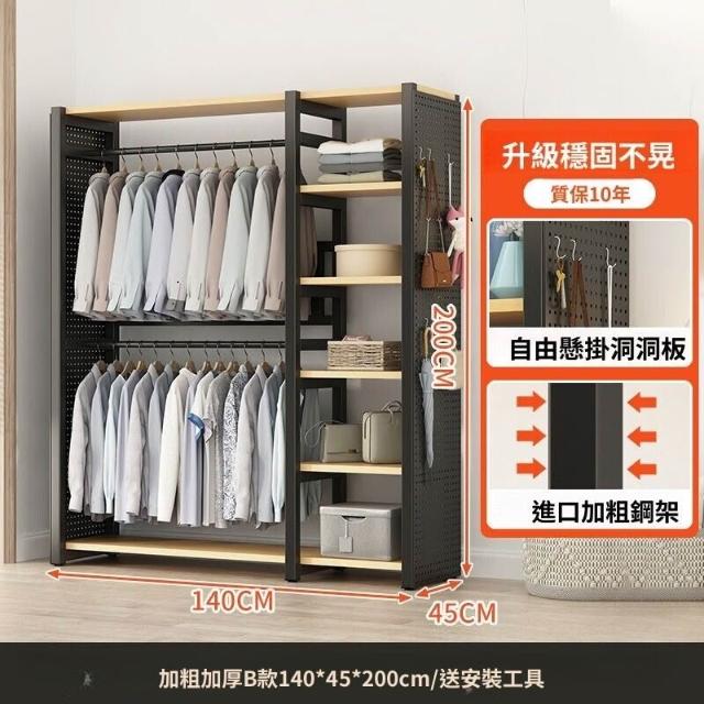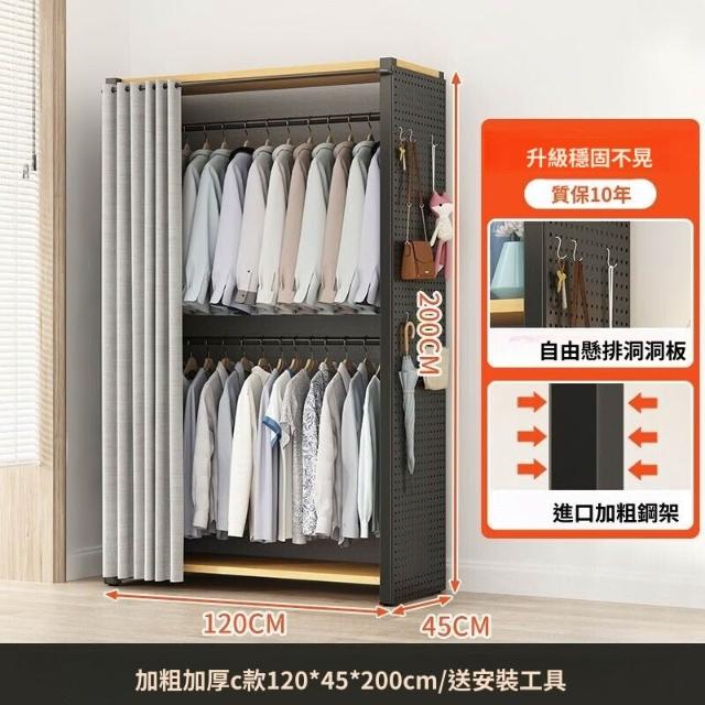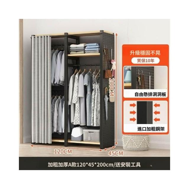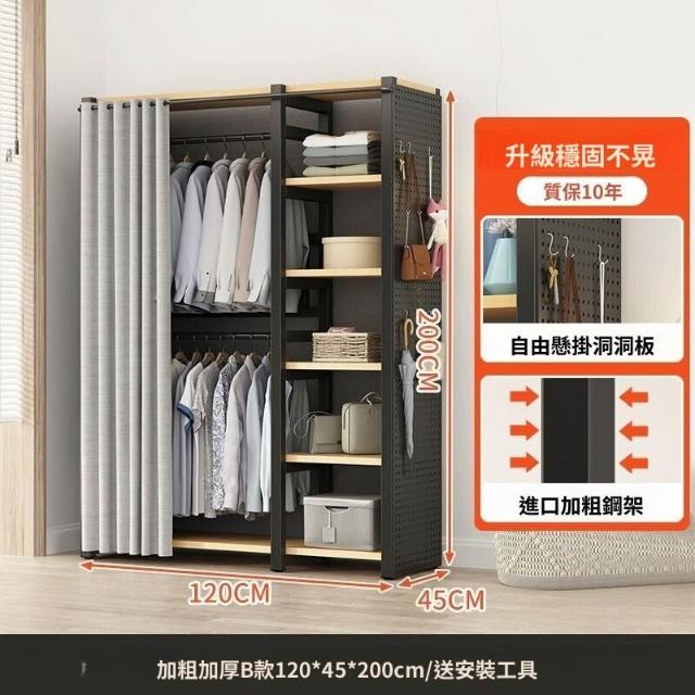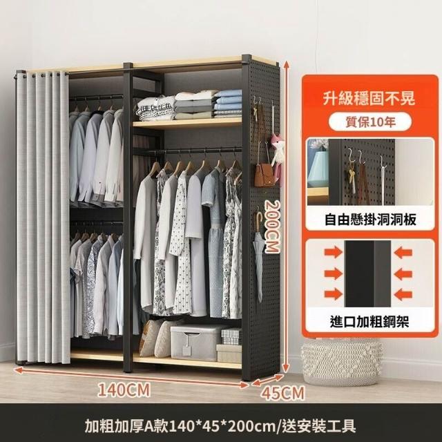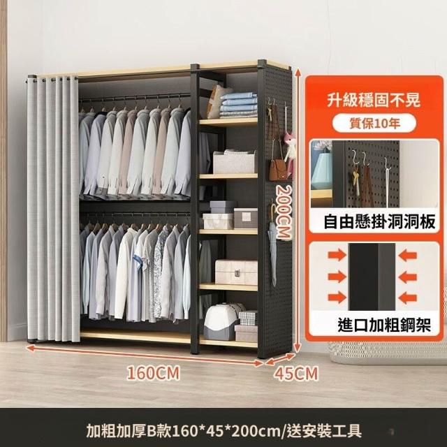熱銷💗金屬衣櫃 簡易衣櫥 全封閉簡易組裝鐵藝衣櫃結實耐用開放式洞闆衣櫥 衣帽櫃 掛衣櫃 收納櫃 儲物櫃 開放式衣櫃