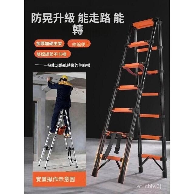 爆款💛可行走 人字梯 梯子 伸縮 折疊 收納 工程用梯 傢用 伸縮多功能樓梯陞降梯