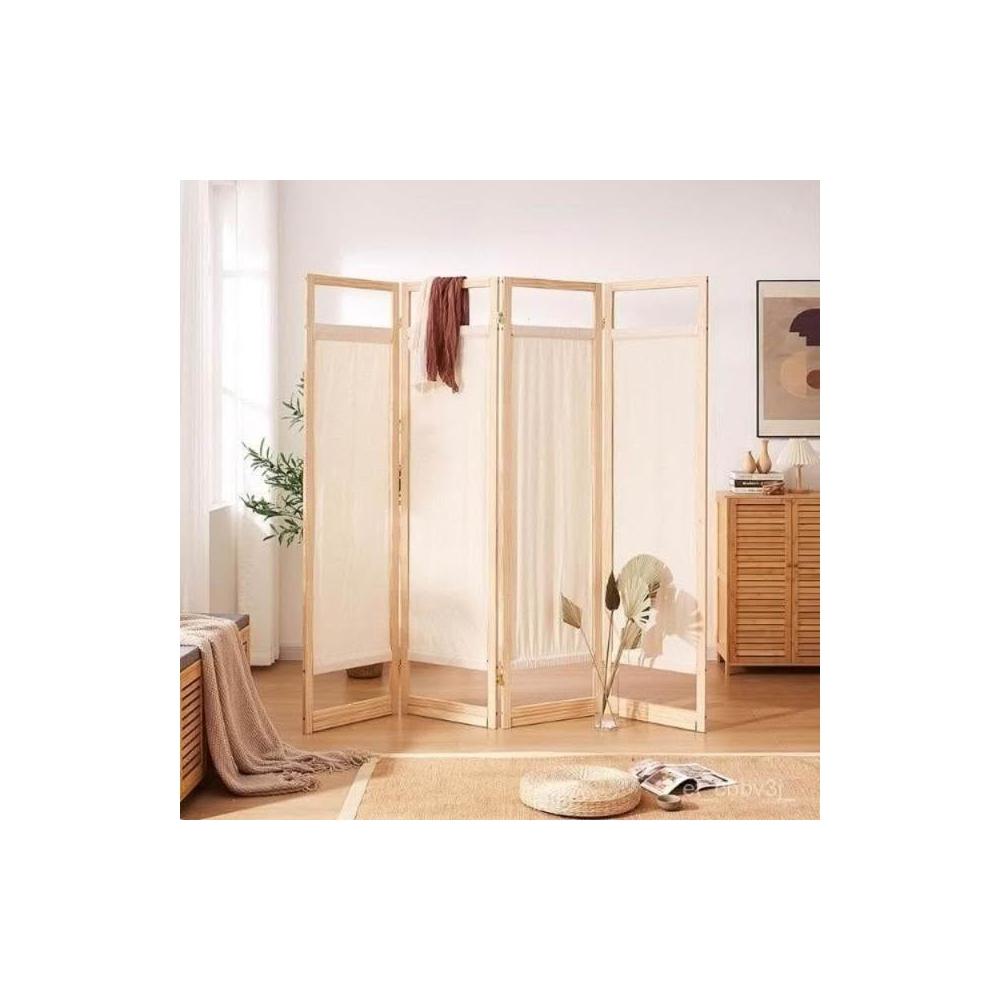 熱銷💖日式侘寂風實木亞麻布藝屏風隔間闆 入戶玄關中式簡易格柵屏風隔斷 客廳可折疊移動式活動酒店茶室一片式遮擋折屏