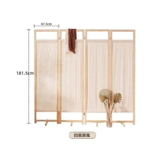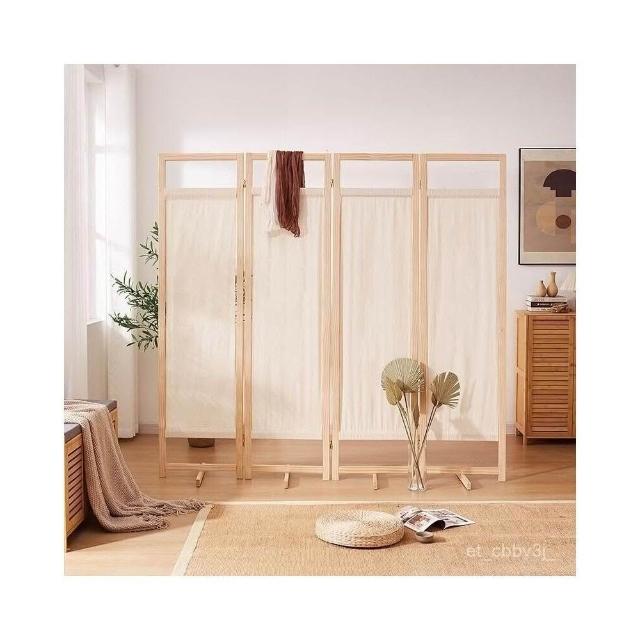 熱銷💖日式侘寂風實木亞麻布藝屏風隔間闆 入戶玄關中式簡易格柵屏風隔斷 客廳可折疊移動式活動酒店茶室一片式遮擋折屏