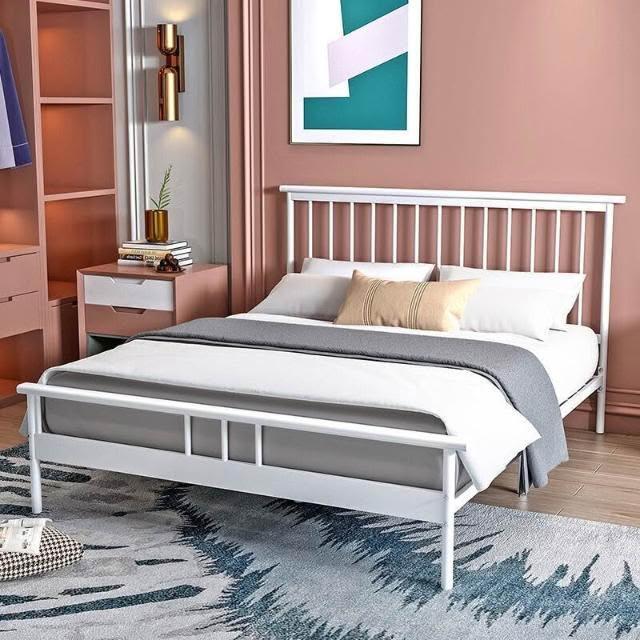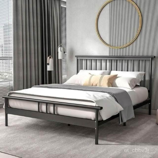 熱賣💕雙人床架 鐵藝床 鐵架床 架子床 單人床架 鐵床 北歐鐵床 宿捨單人床 簡約傢用鋼架床 防異響員工鐵架子床