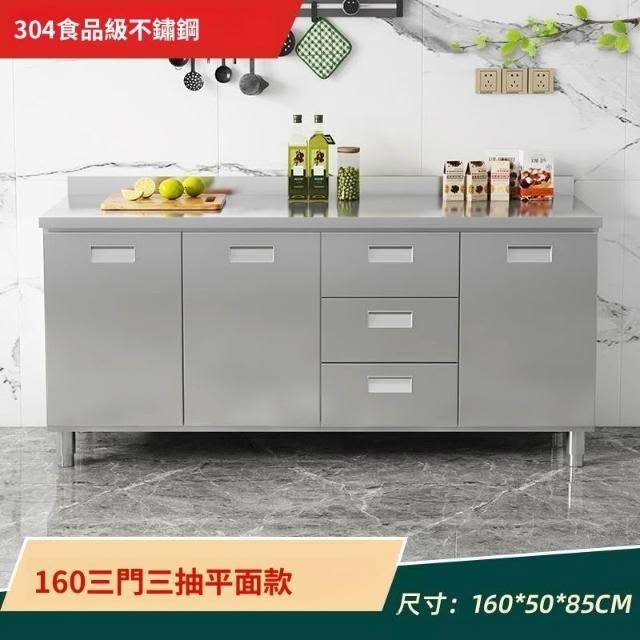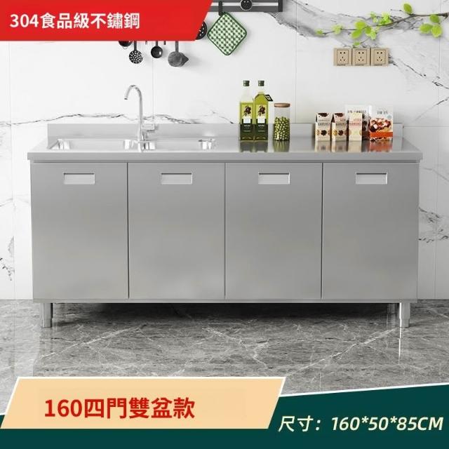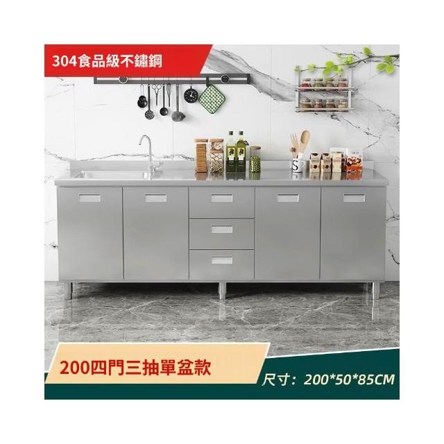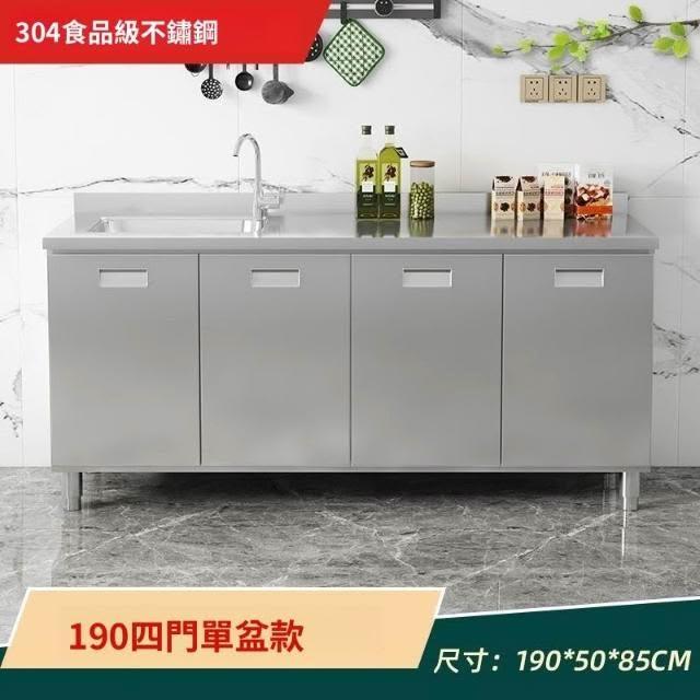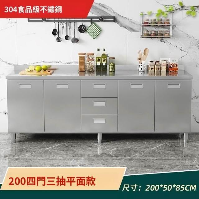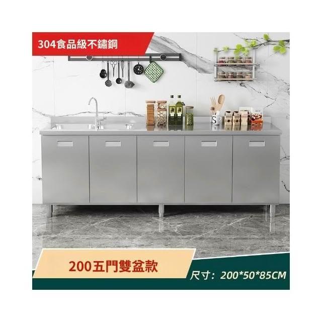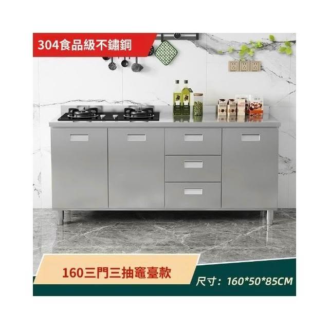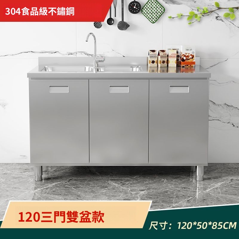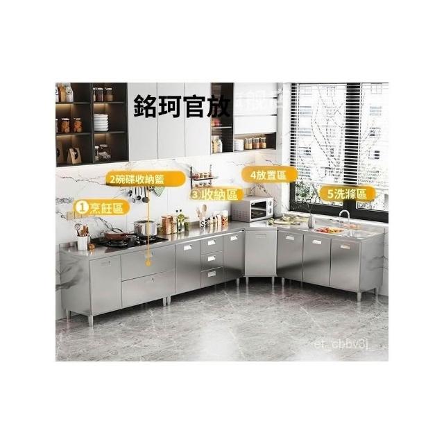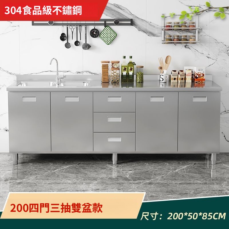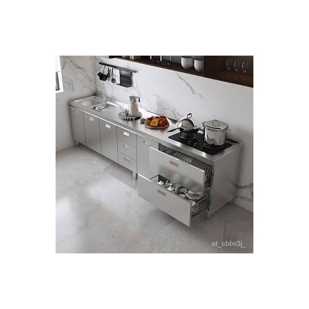 熱賣💛304整體不銹鋼廚房櫥櫃家用簡易廚櫃竈臺櫃一體免組裝收納餐新品 櫥櫃竈檯櫃水槽櫃 櫥櫃