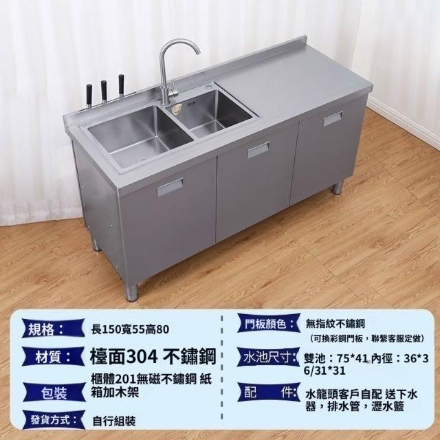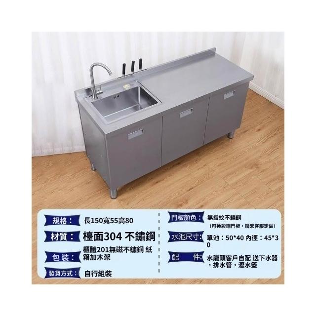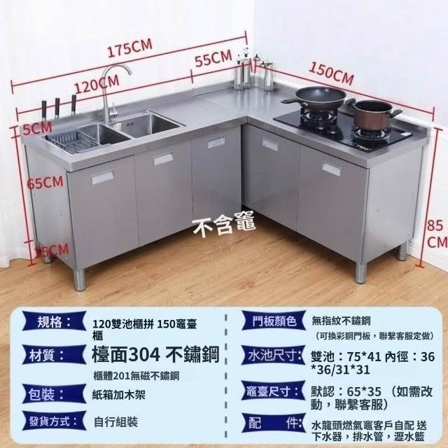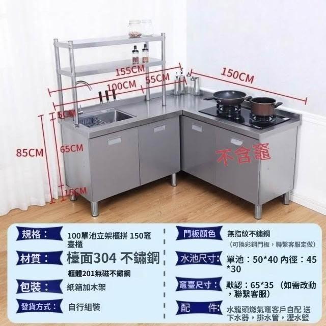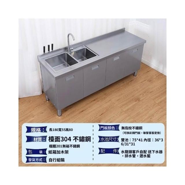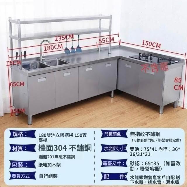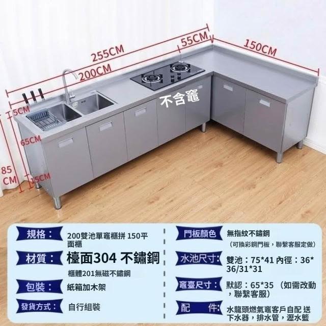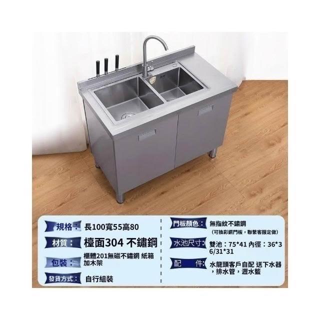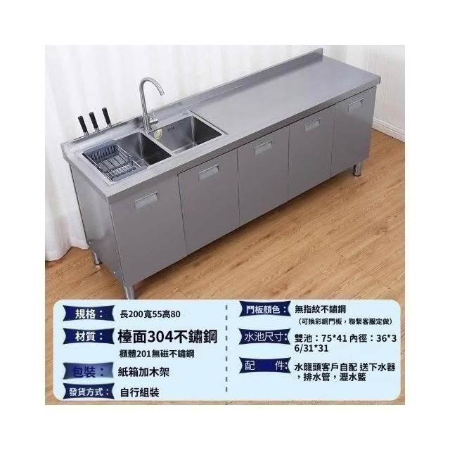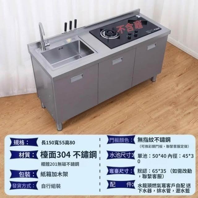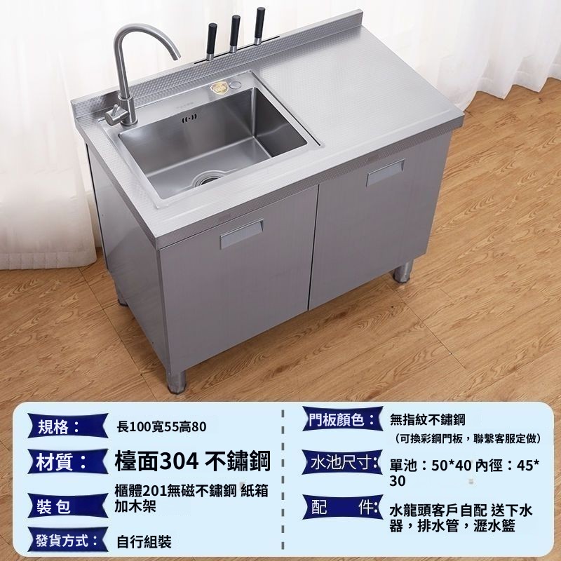 熱賣💛不鏽鋼洗手櫃 不鏽鋼櫥櫃 白鐵流理臺 可家用商用 304不鏽鋼 儲物 竈臺 水槽 檯麵一體式櫥櫃