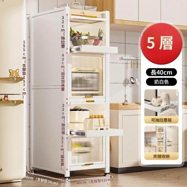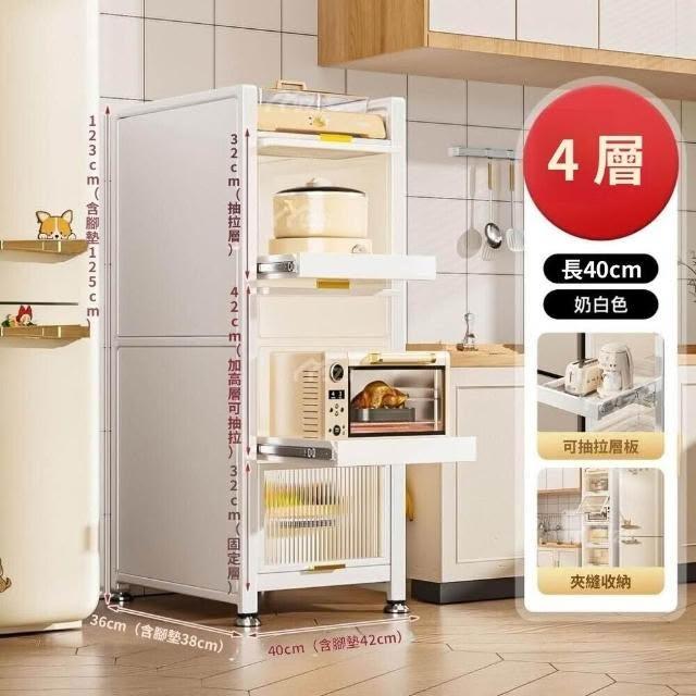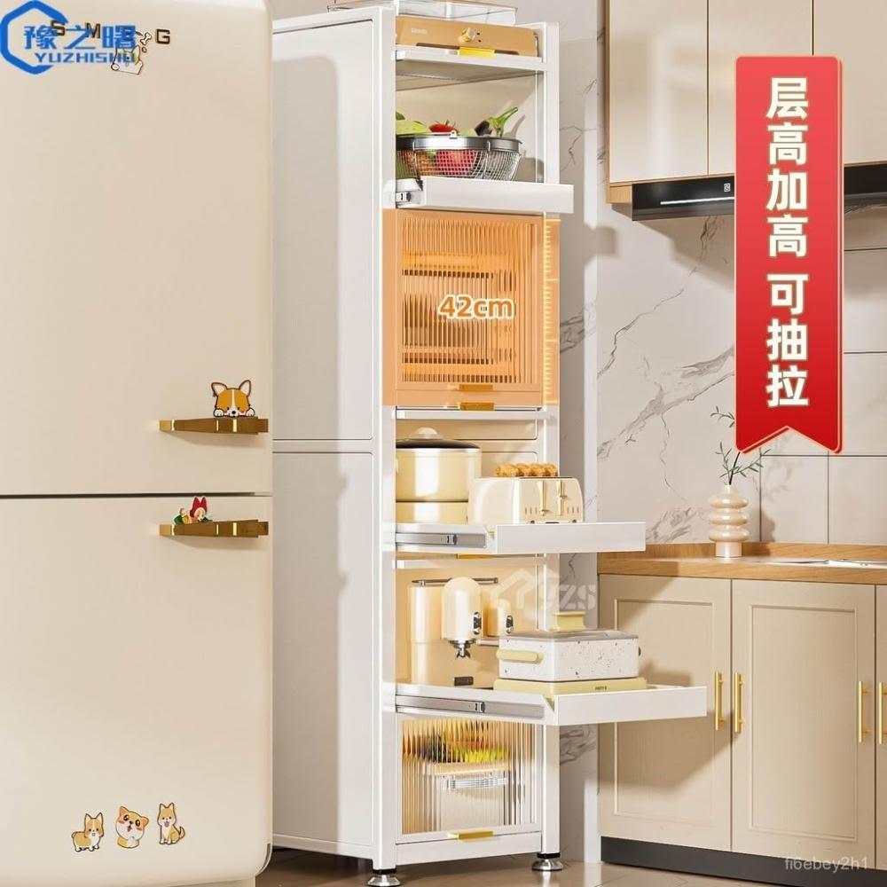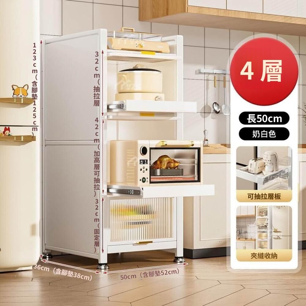 電器櫃抽拉式收納架 35cm/50cm白色抽拉置物架廚房置物架收納落地多層抽拉式儲物櫃多功能微波爐櫥櫃冰箱夾縫櫃