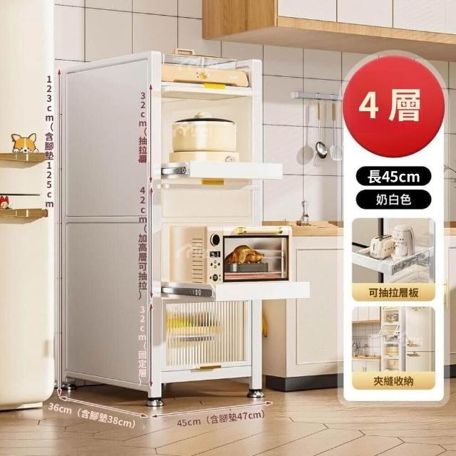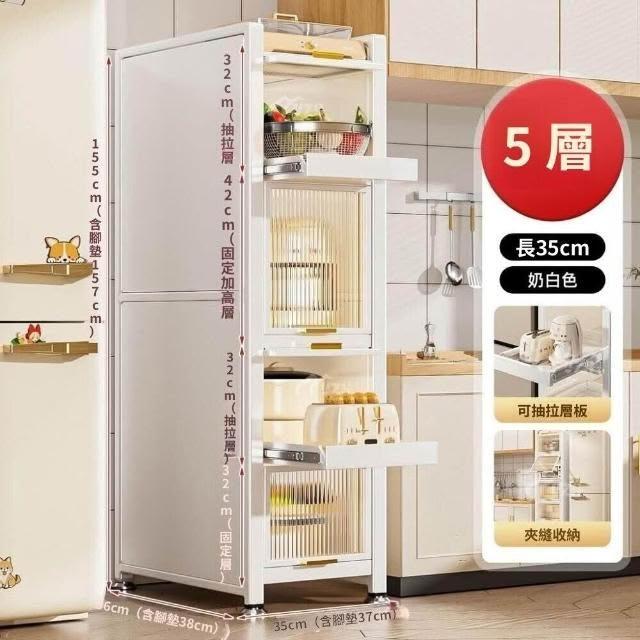 電器櫃抽拉式收納架 35cm/50cm白色抽拉置物架廚房置物架收納落地多層抽拉式儲物櫃多功能微波爐櫥櫃冰箱夾縫櫃