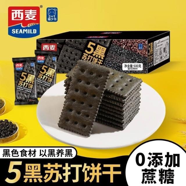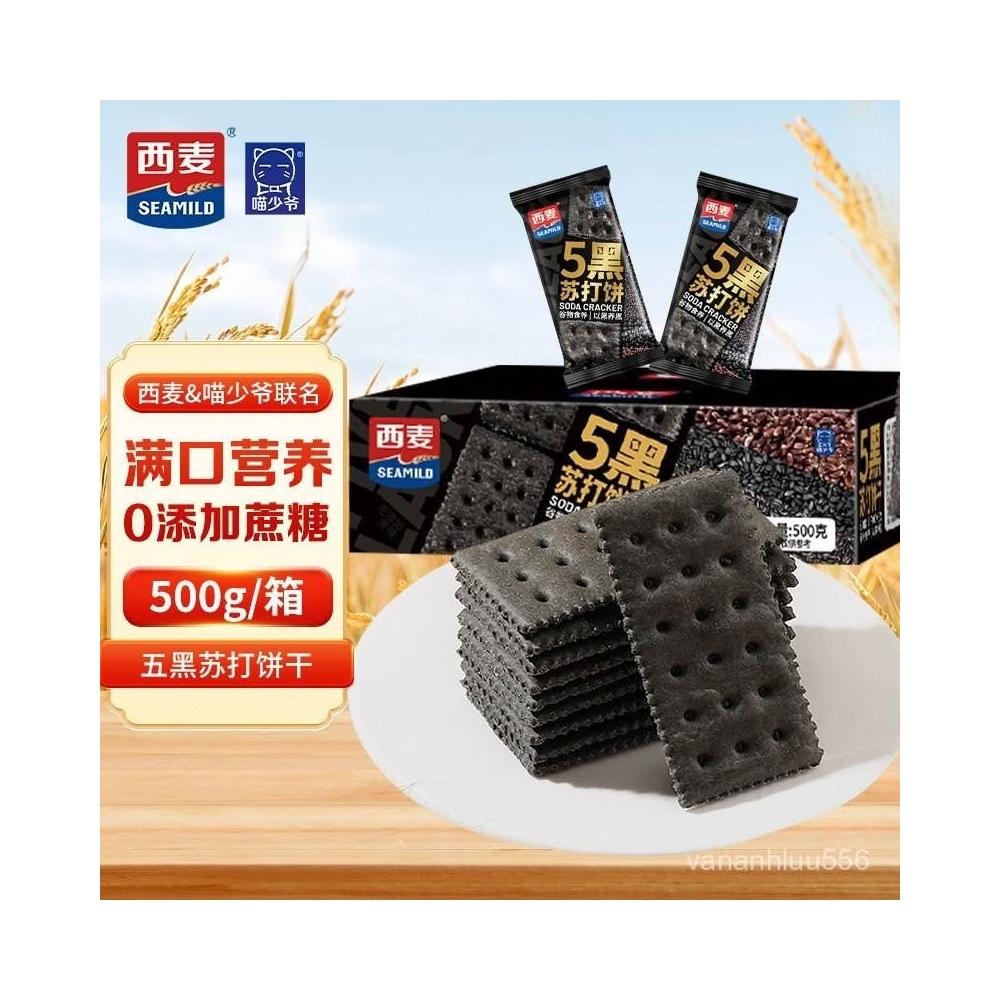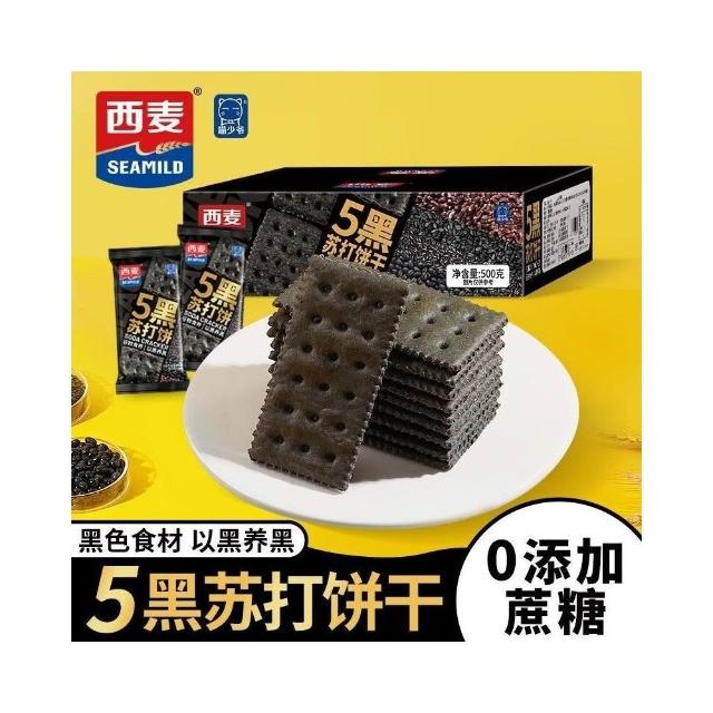 傑傑好物優選西麥五黑蘇打餅幹500g孕㛿兒童辦公室小零食0蔗糖雜糧薄脆餅幹