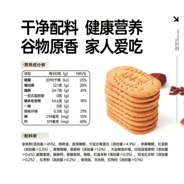 傑傑優選 中秋節中元節唐小零無糖餅幹五紅穀物孕㛿控營養糖尿人糖友食品分裝宿捨代早餐