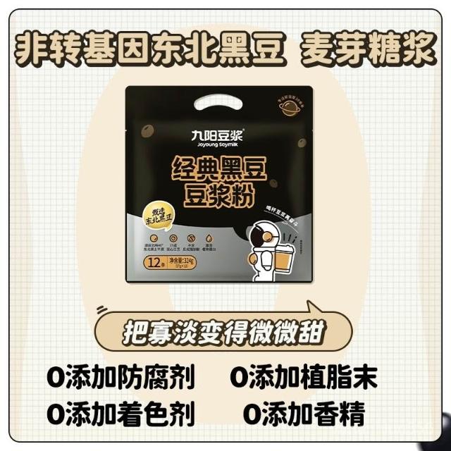 傑傑好物優選九陽豆漿經典黑豆豆漿粉12條低甜原味無添加蔗糖營養早餐速溶豆漿