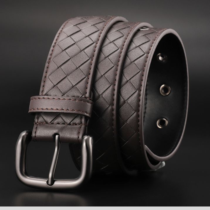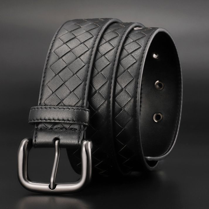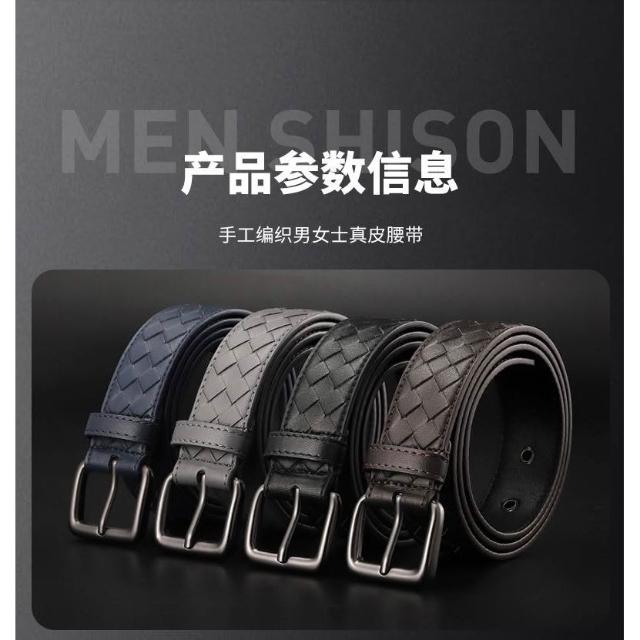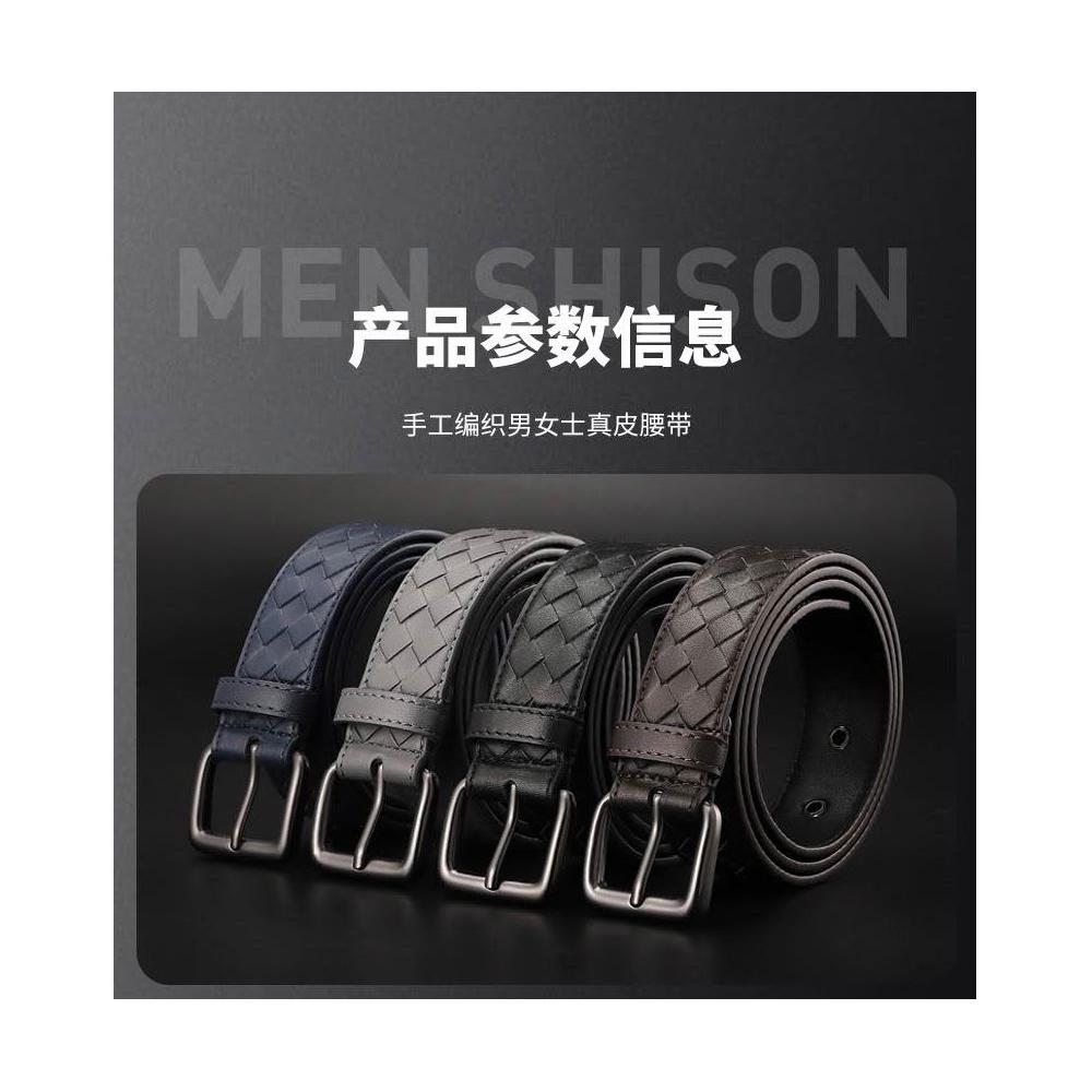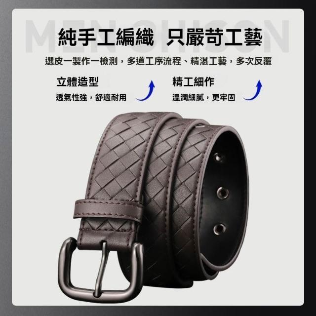 茂源優選BV皮帶手工男士編織腰帶牛皮針釦休閒百搭牛仔褲商務新款3.5寬