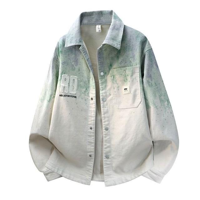 茂源優選男士春秋季扎染漸變色長袖襯衫青年新款寬鬆休閒撞色帥氣帥氣襯衣