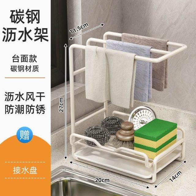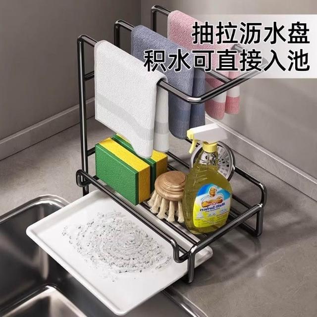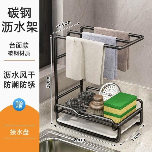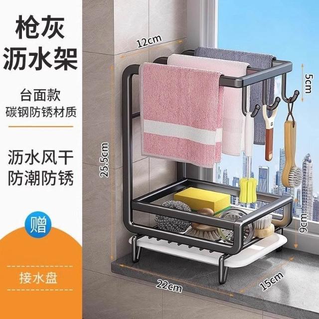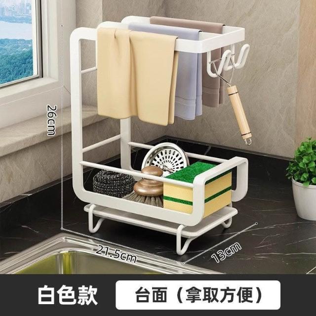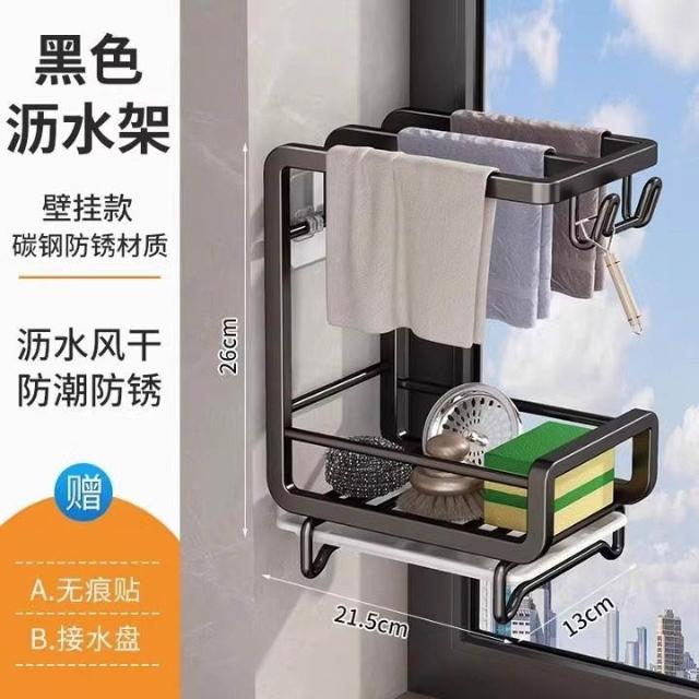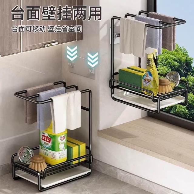 明明嚴選貝凱廚房置物架多功能瀝水架免打孔檯面壁掛毛巾水槽收納抹布架子
