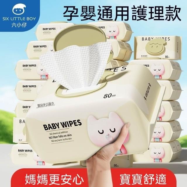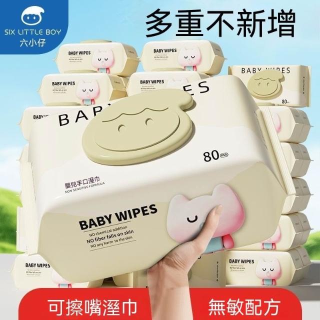 樂樂甄選六小仔嬰兒溼巾寶寶手口專用嬰幼兒大包加厚80抽新生兒帶蓋溼紙巾