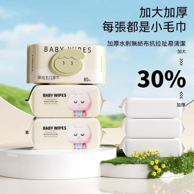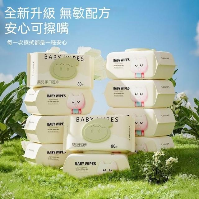 樂樂甄選六小仔嬰兒溼巾寶寶手口專用嬰幼兒大包加厚80抽新生兒帶蓋溼紙巾