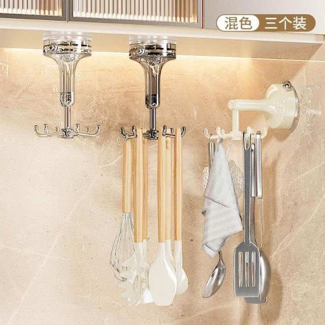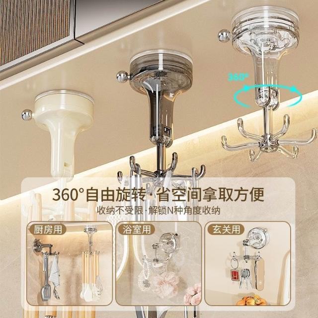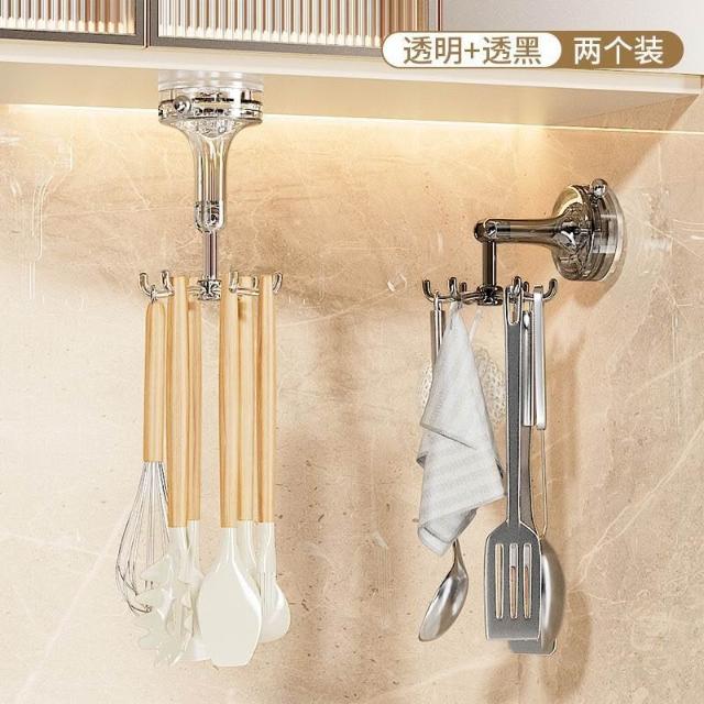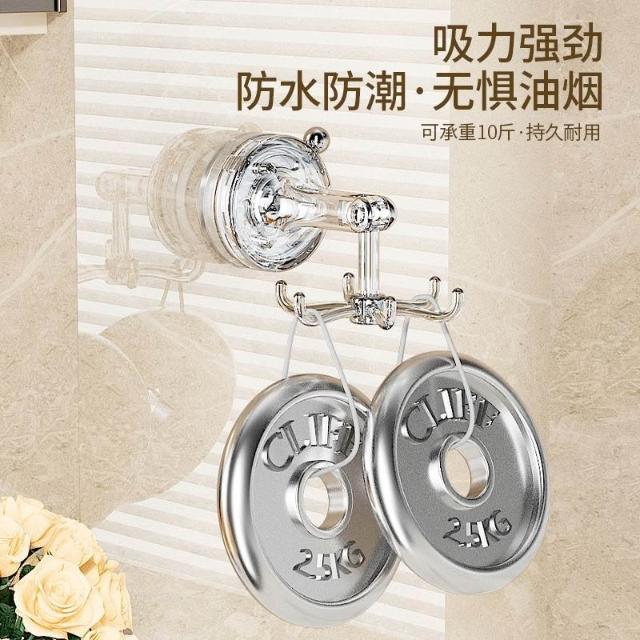 樂樂甄選吸盤廚房掛鉤六爪旋轉粘鉤多功能免打孔強力勺子鏟子掛架置物架