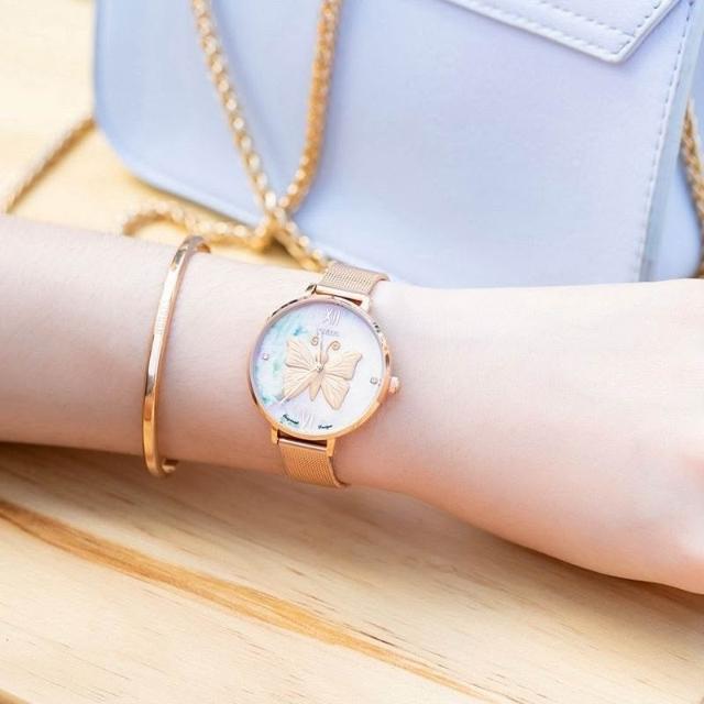 樂樂甄選【品牌正品】瑞士賓爵時尚女士石英手錶玫瑰金蝴蝶貝母錶盤送禮物