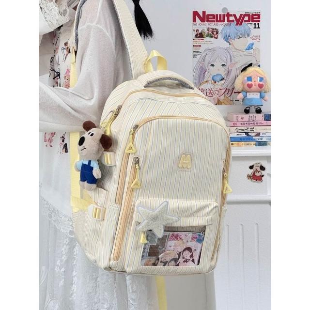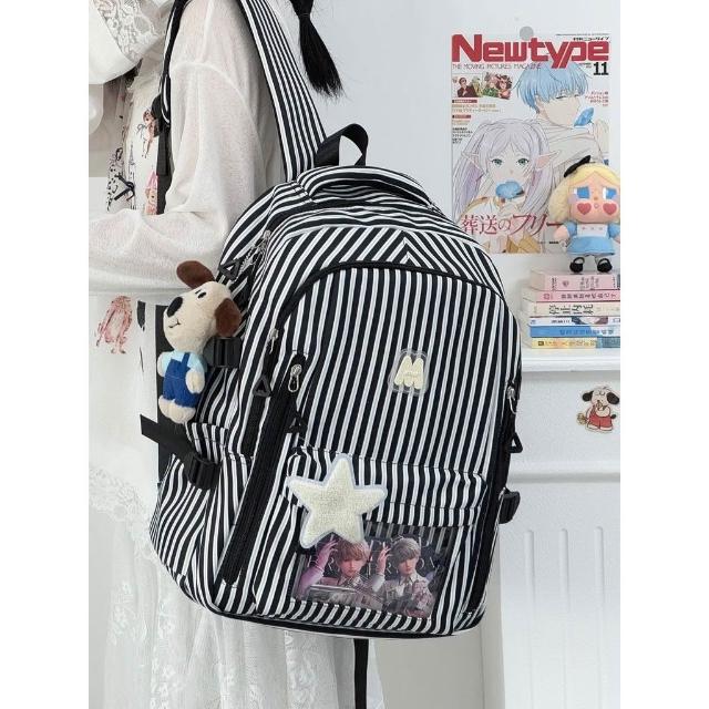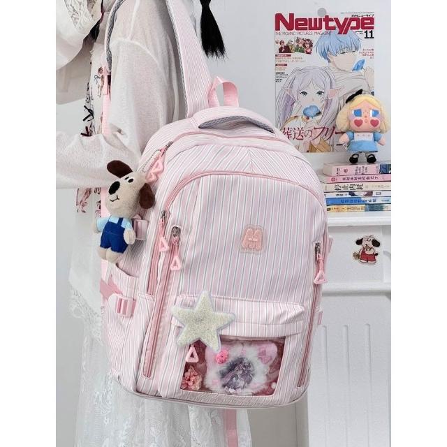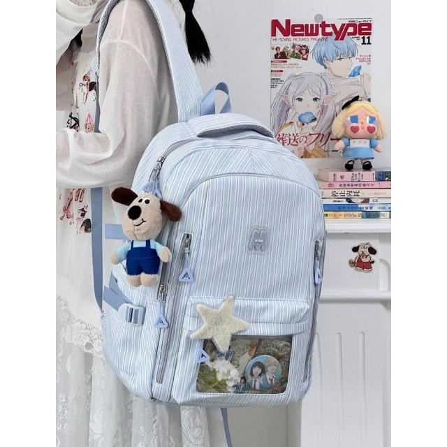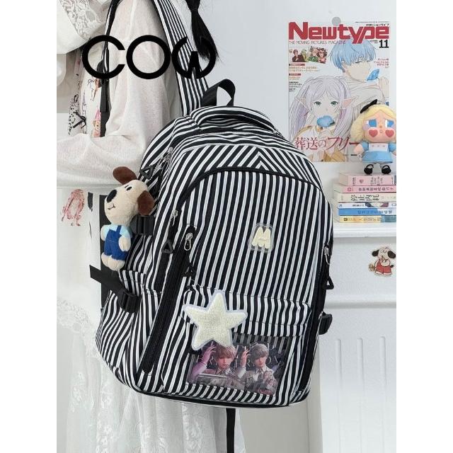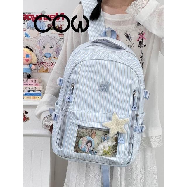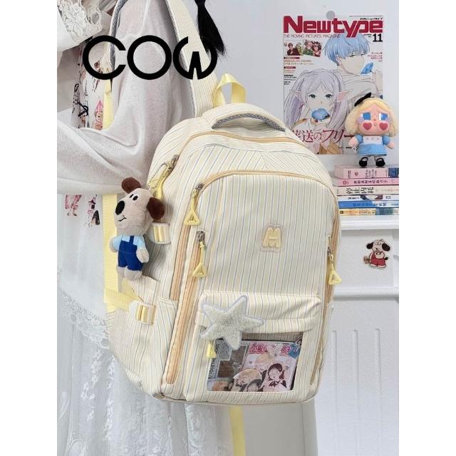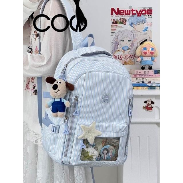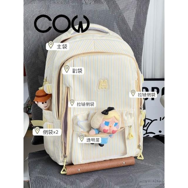 聰明甄選【COW】新款高顏值清新甜美條紋 透明吧唧痛包初高中生輕便大容量揹包
