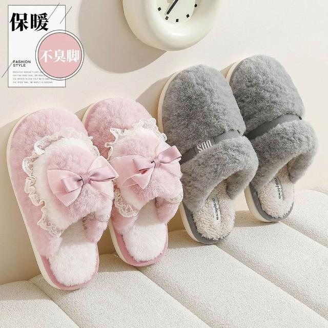 聰明甄選蝴蝶結棉拖鞋女款秋冬季2025新款室內家居防滑保暖毛絨月子棉鞋女