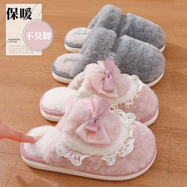 聰明甄選蝴蝶結棉拖鞋女款秋冬季2025新款室內家居防滑保暖毛絨月子棉鞋女
