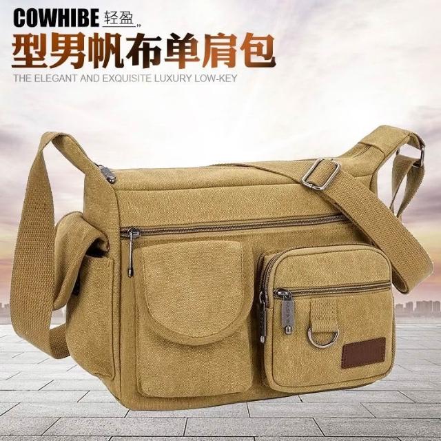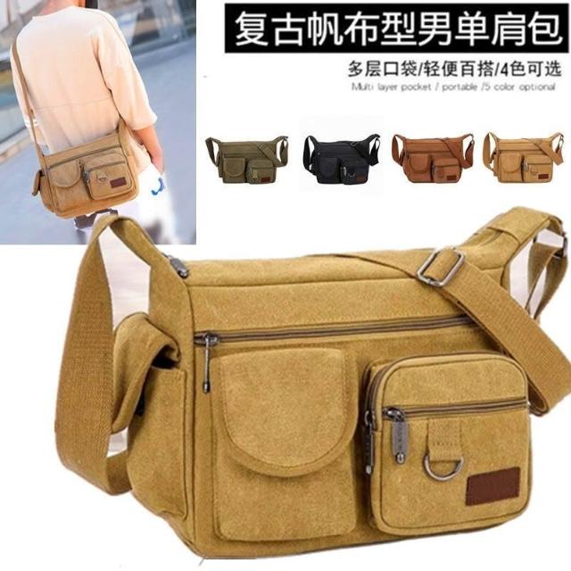 聰明甄選戶外帆布包男士包包單肩斜挎包韓版復古休閒包運動揹包郵差包男包