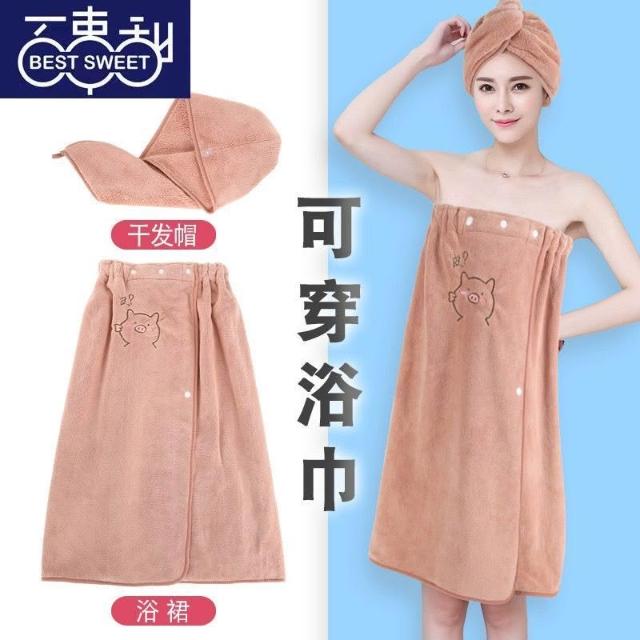 樂樂甄選浴巾可穿可裹浴袍吸水美容院加大碼浴裙游泳女冬季性感抹胸可穿式