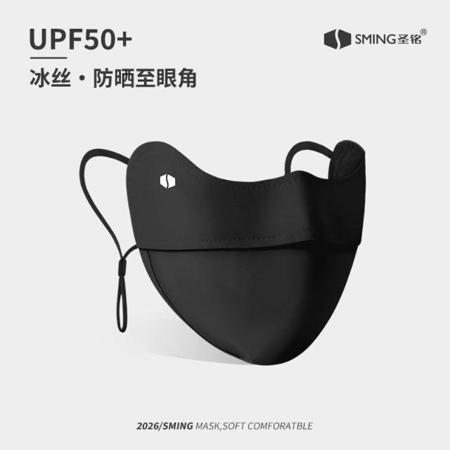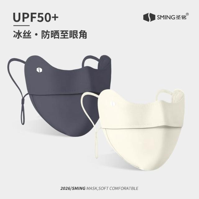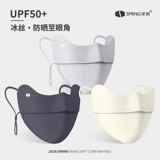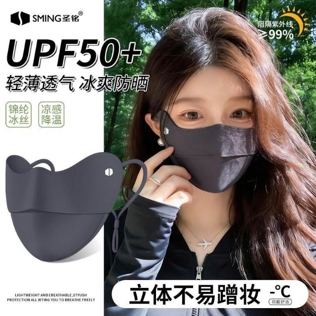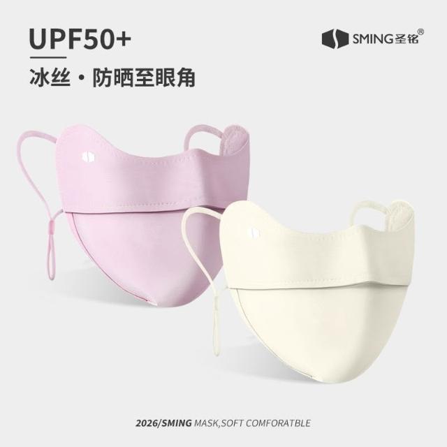 優先購聖銘冰絲防曬口罩女夏季防紫外線護眼角高顏值輕薄透氣顯臉小面罩