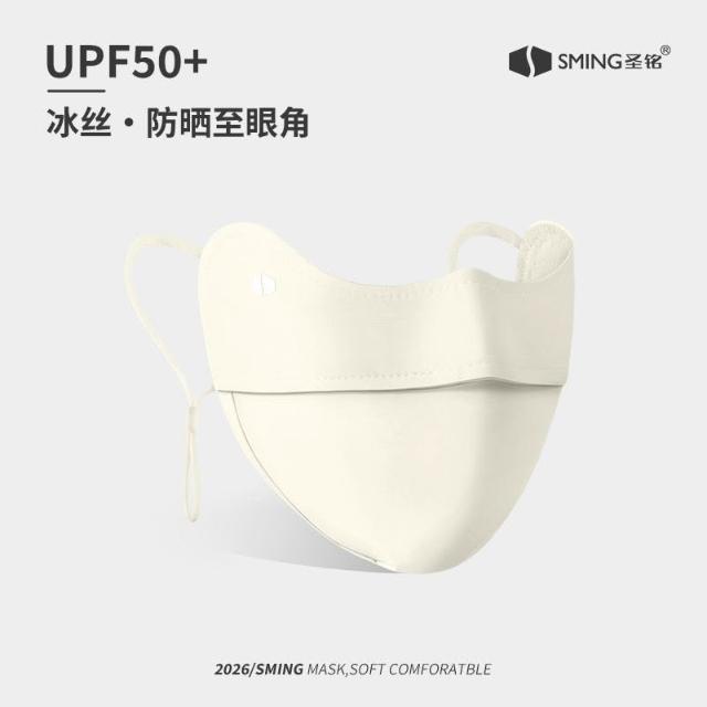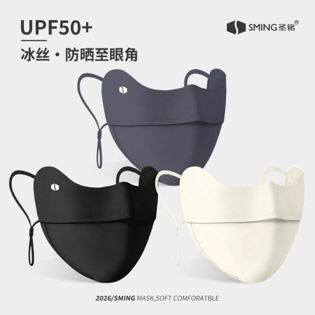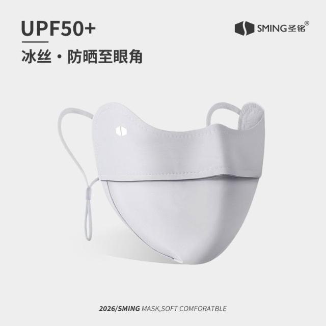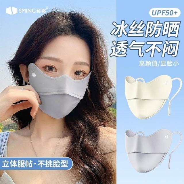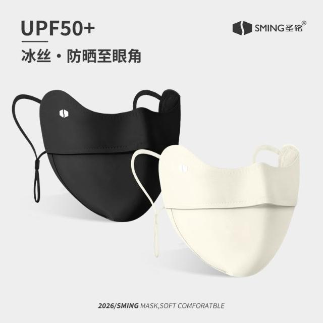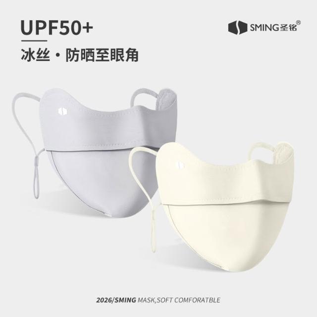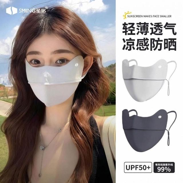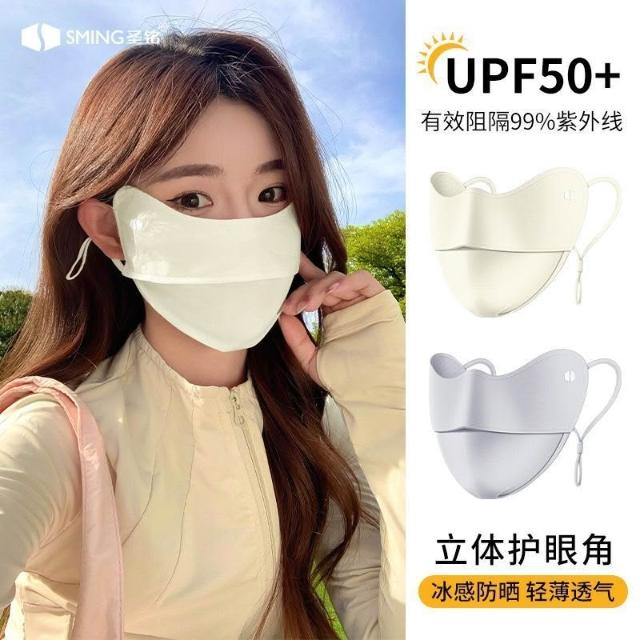 優先購聖銘冰絲防曬口罩女夏季防紫外線護眼角高顏值輕薄透氣顯臉小面罩