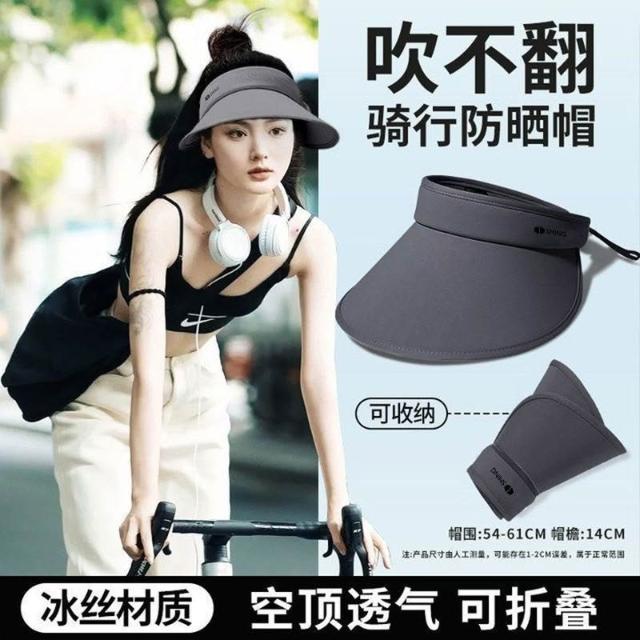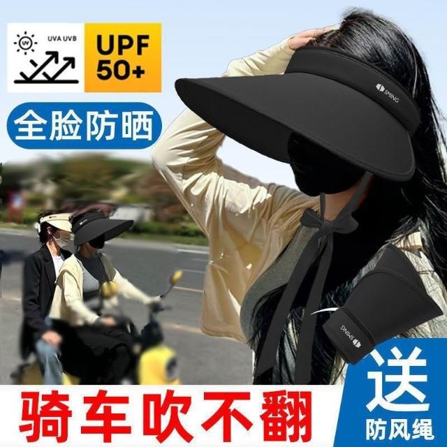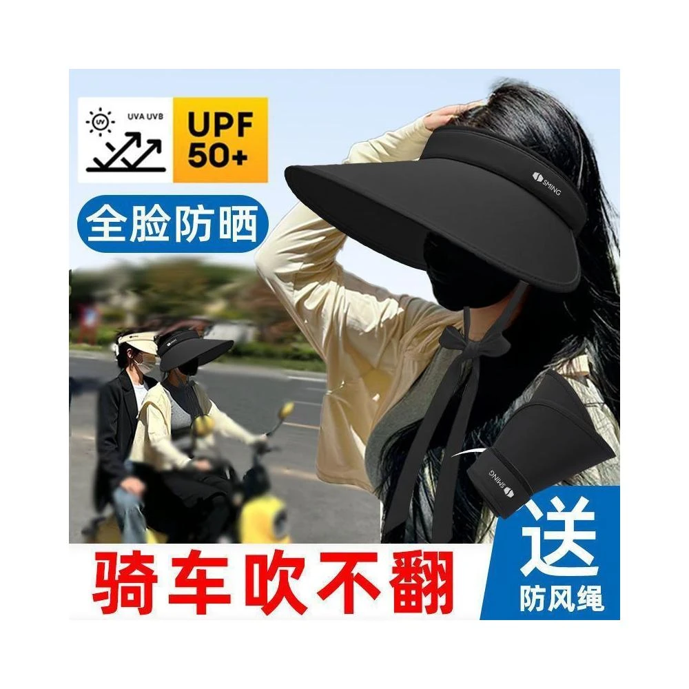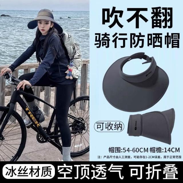 優先購騎車防曬帽吹不翻自行車防風防曬帽不掉可摺疊大帽檐空頂女大頭圍