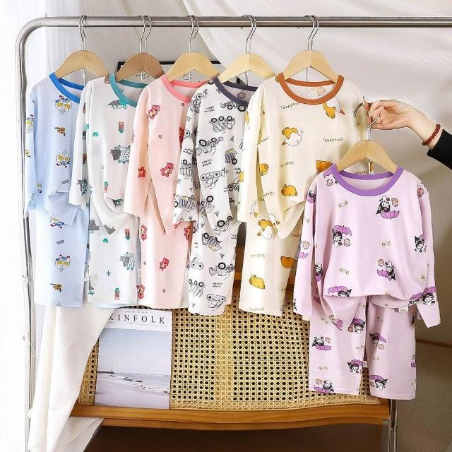 優先購兒童天絲萊賽爾九分袖空調服套裝夏季薄款家居服男童女童寶寶睡衣