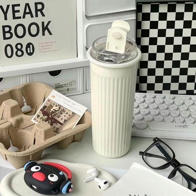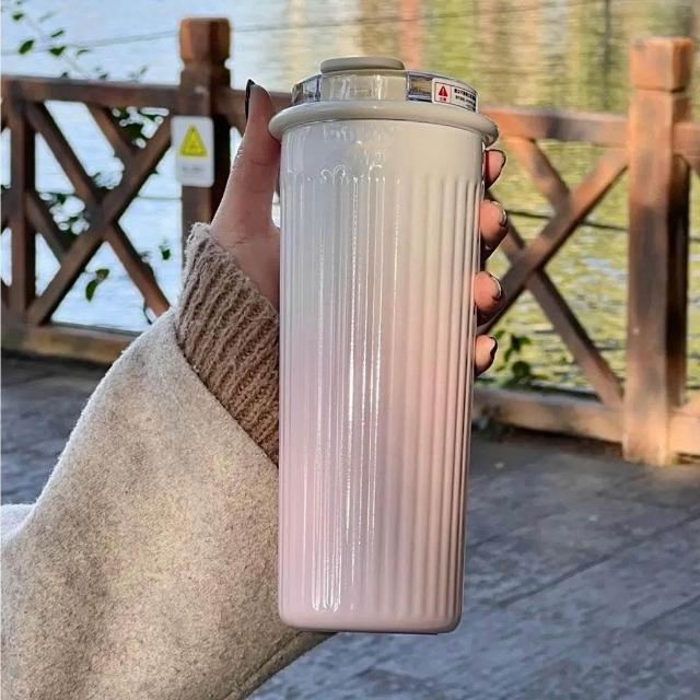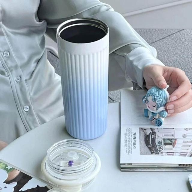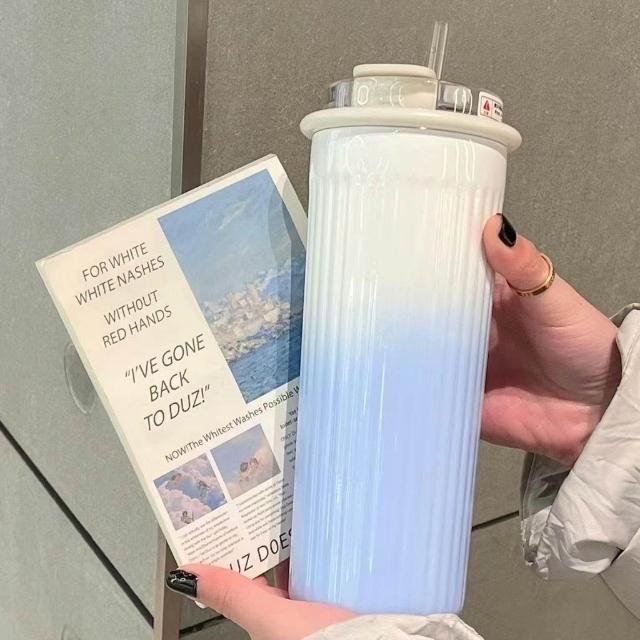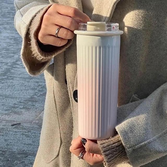 ins高顏值漸變色不鏽鋼保溫杯子學生女生雙飲吸管杯車載辦公水杯