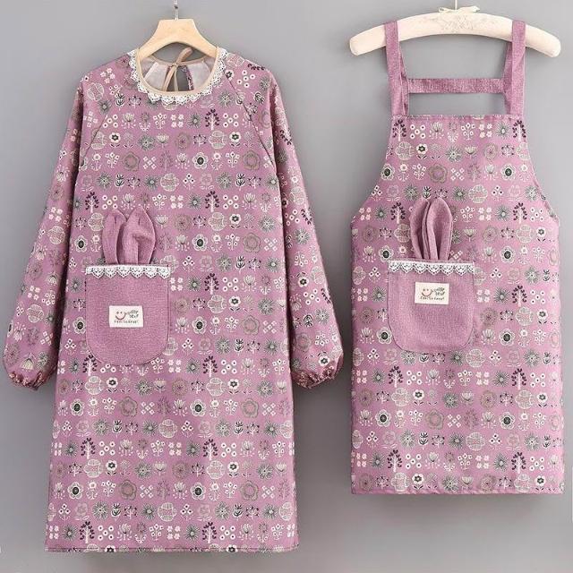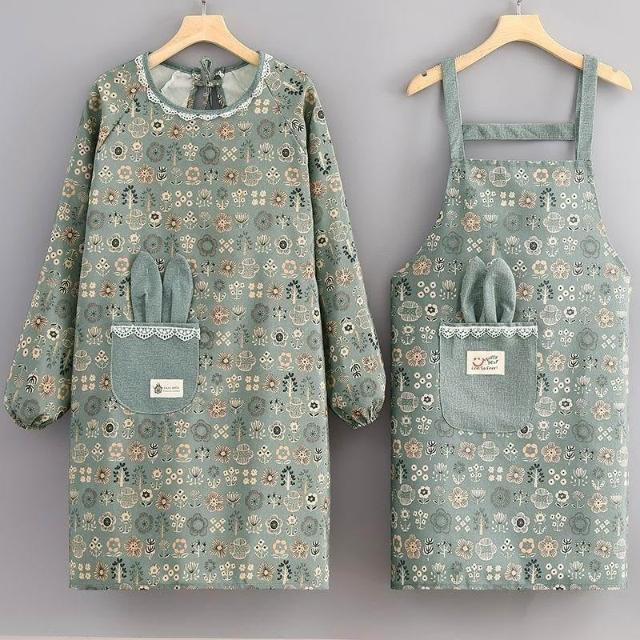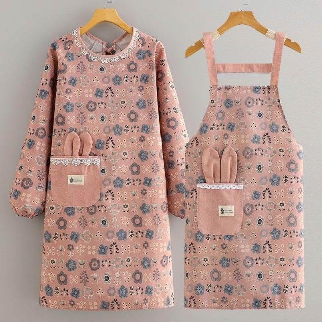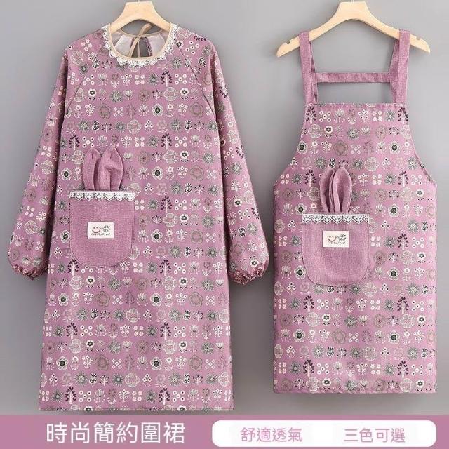 帆布圍裙廚房做飯新款棉布透氣可愛圍裙耐磨餐飲上班專用長袖罩衣