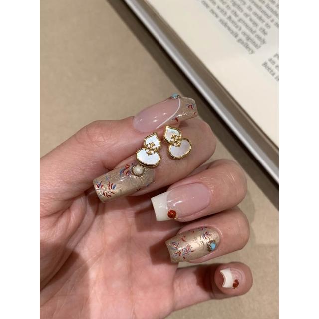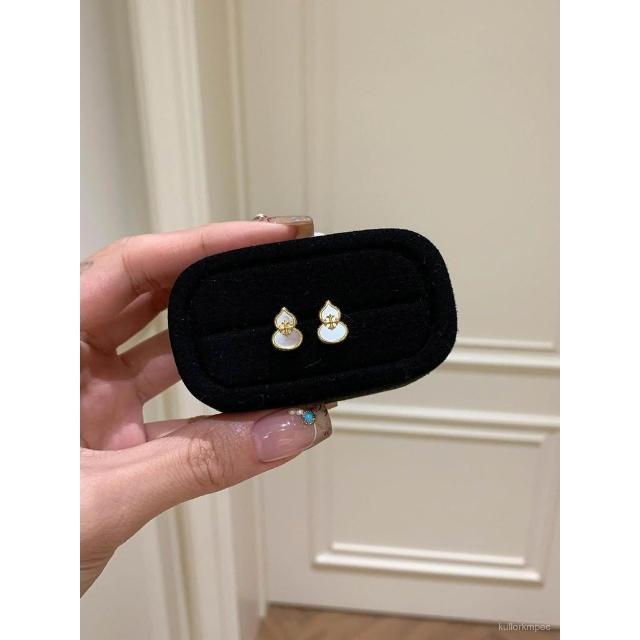 輕奢複古風白貝母鳶尾花葫蘆耳釘女個性百搭耳環小衆設計感耳飾品