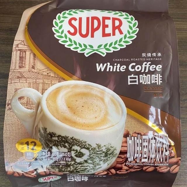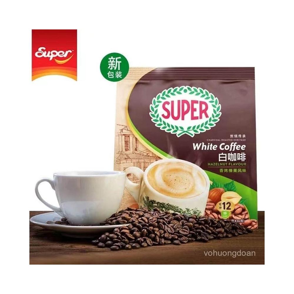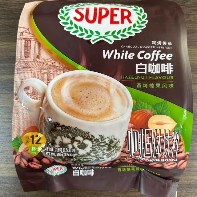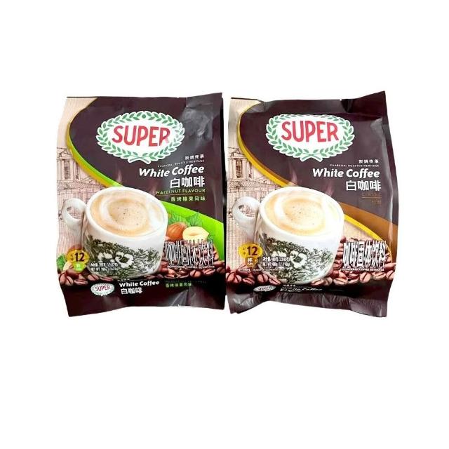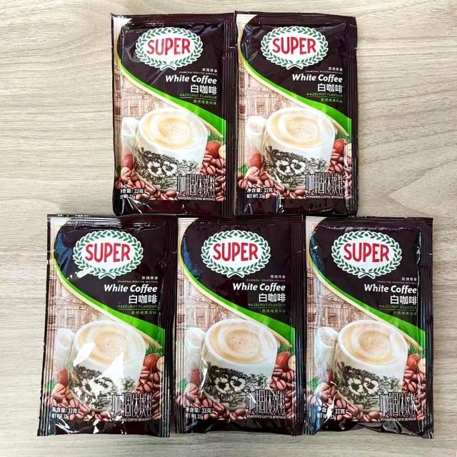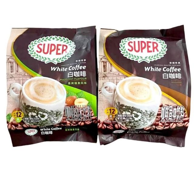 美美優選 馬來西亞原裝進口SUPER超級炭燒榛果味原味三閤一速溶白咖啡袋裝