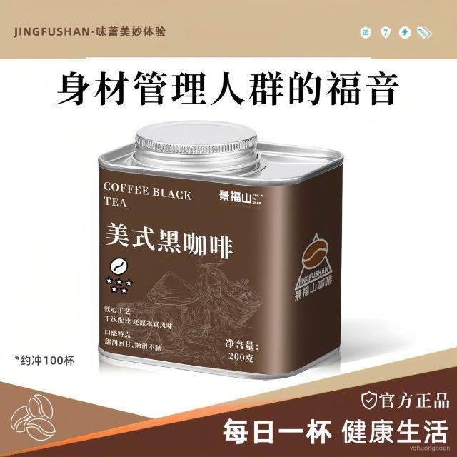 美美優選 景福山美式黑咖啡冰美式卽溶速溶咖啡粉0脂0蔗糖黑咖啡花草茶罐裝