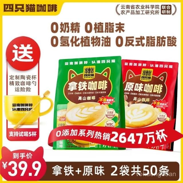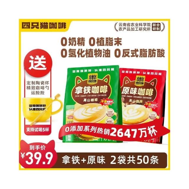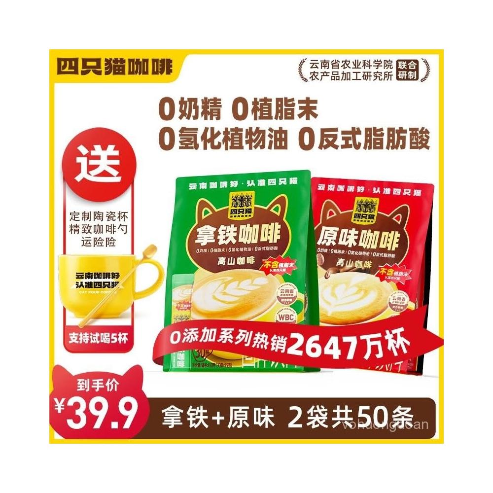 美美優選 原味 拿鐵咖啡25條/袋 0添加 肆衹貓 三閤一 速溶咖啡