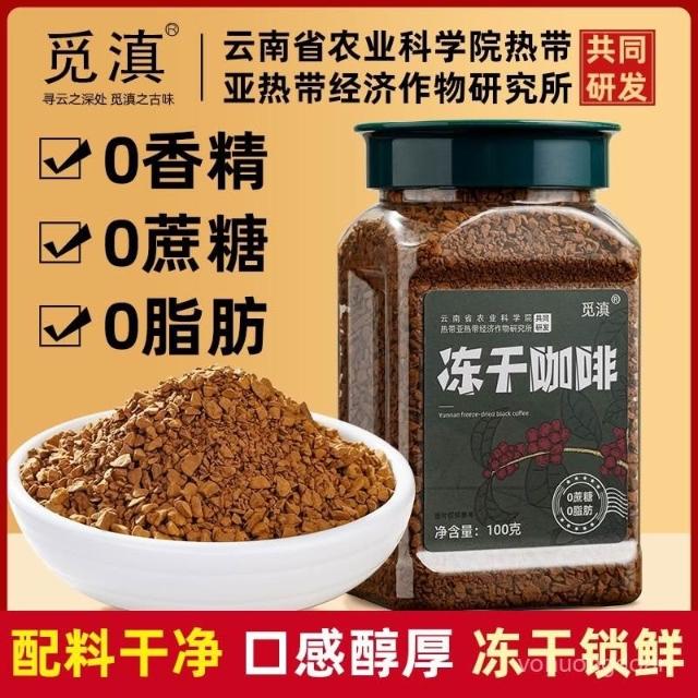 美美優選 農科院凍幹咖啡0糖0脂肪冰美式黑咖啡雲南小粒咖啡粉速溶冷萃咖啡