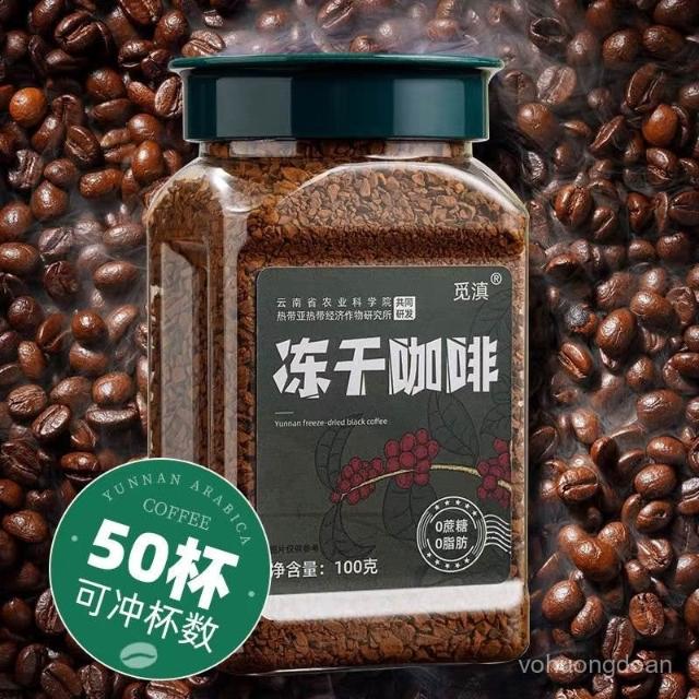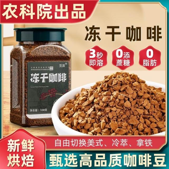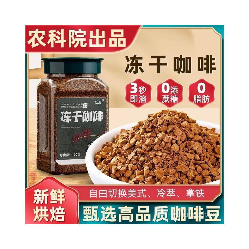 美美優選 農科院凍幹咖啡0糖0脂肪冰美式黑咖啡雲南小粒咖啡粉速溶冷萃咖啡