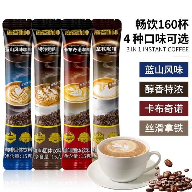 美美優選 速溶特濃藍山卡布奇諾拿鐵咖啡粉三閤一原味雲南小粒條裝學生