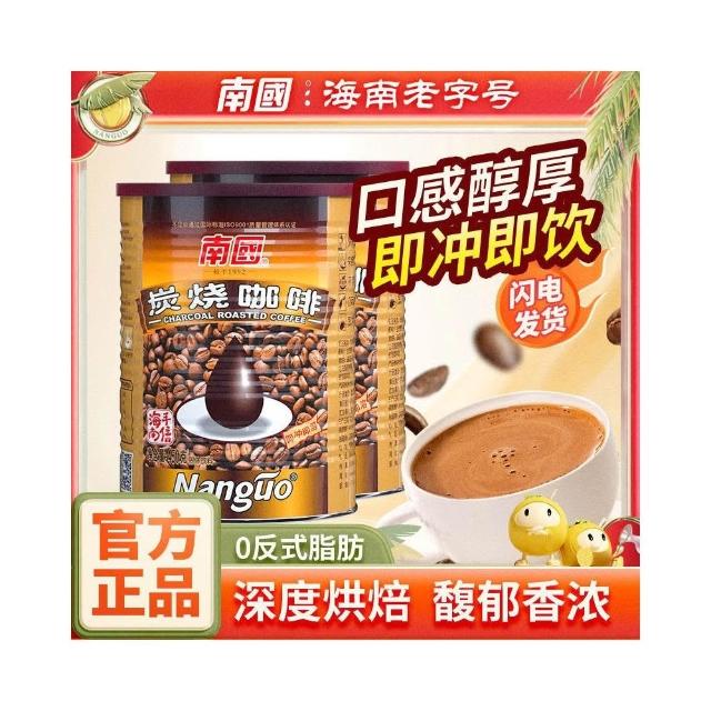 美美優選 南國食品海南特産炭燒咖啡450g速溶特濃加班熬夜咖啡粉