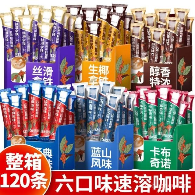 美美優選 雲南小粒咖啡三閤一速溶咖啡粉條裝生椰拿鐵藍山原味特濃整箱批髮